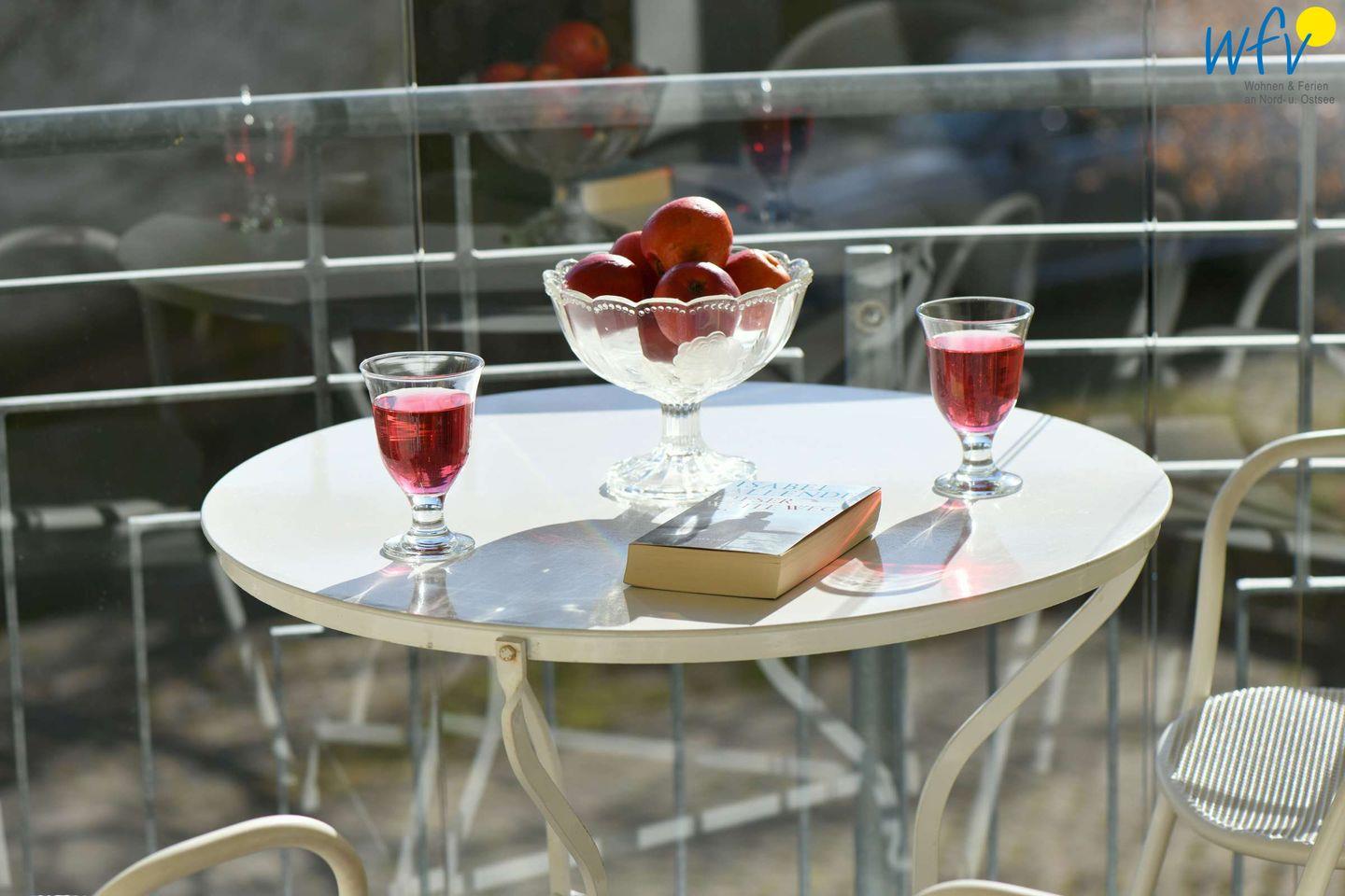 Schon beim Frühstück können Sie wohltuende Ostseeluft genießen, einen schönen Blick nach draußen werfen und Pläne für den Tag auf Rügen machen! Der hübsche Essplatz an der breiten Fensterfront und auch der möblierte überdachte Balkon mit mobiler Verglasung lädt zu gemeinsamen Mahlzeiten ein, die Urlaubslaune garantieren!