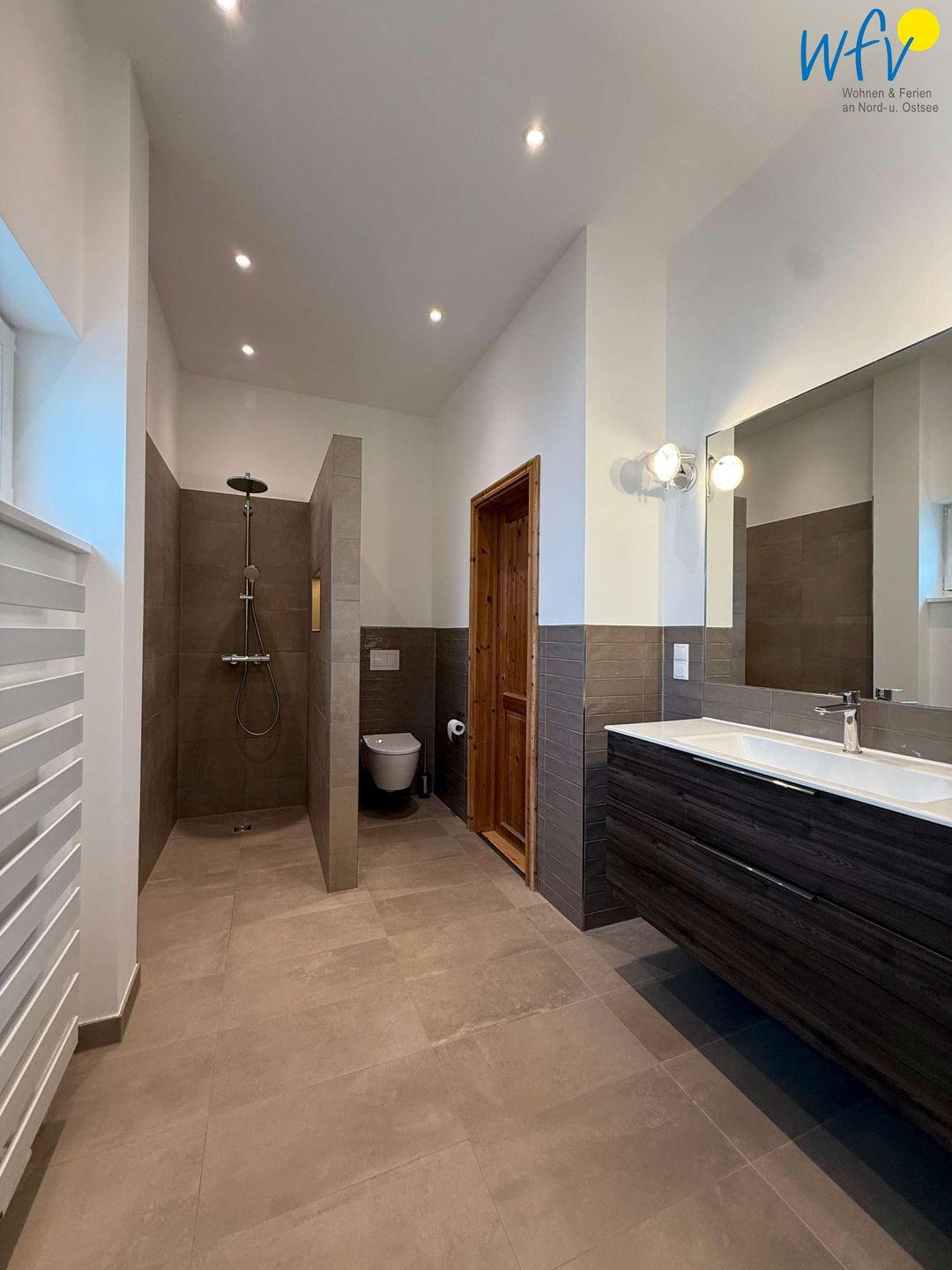 Für weiteres Wohlbefinden sorgt ein großes renoviertes Badezimmer inklusive Sauna. Ideal, um nach dem Strandspaziergang ausgiebig zu entspannen!