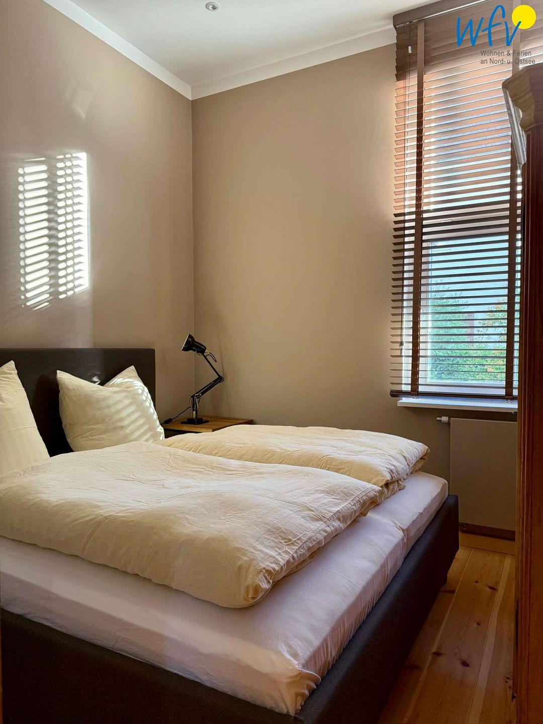 Zwei separate Schlafzimmer mit je einem Doppelbett (2 m x 1,80 m) bieten Ihnen in der Ferienwohnung ? 32 angenehme Rückzugsmöglichkeiten.