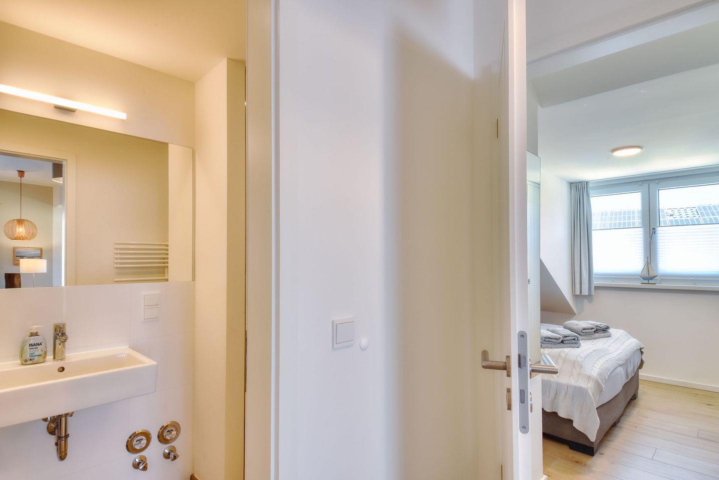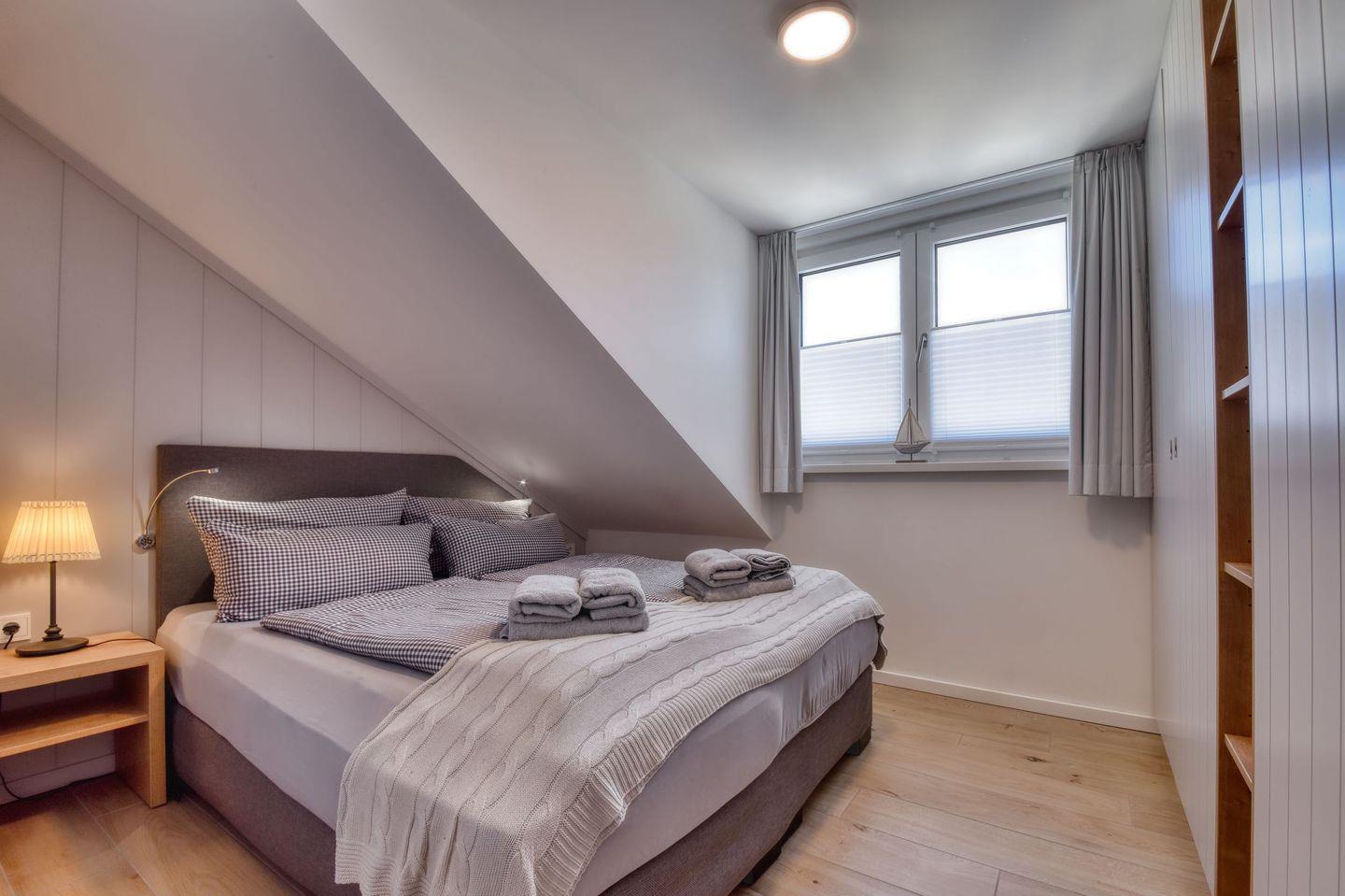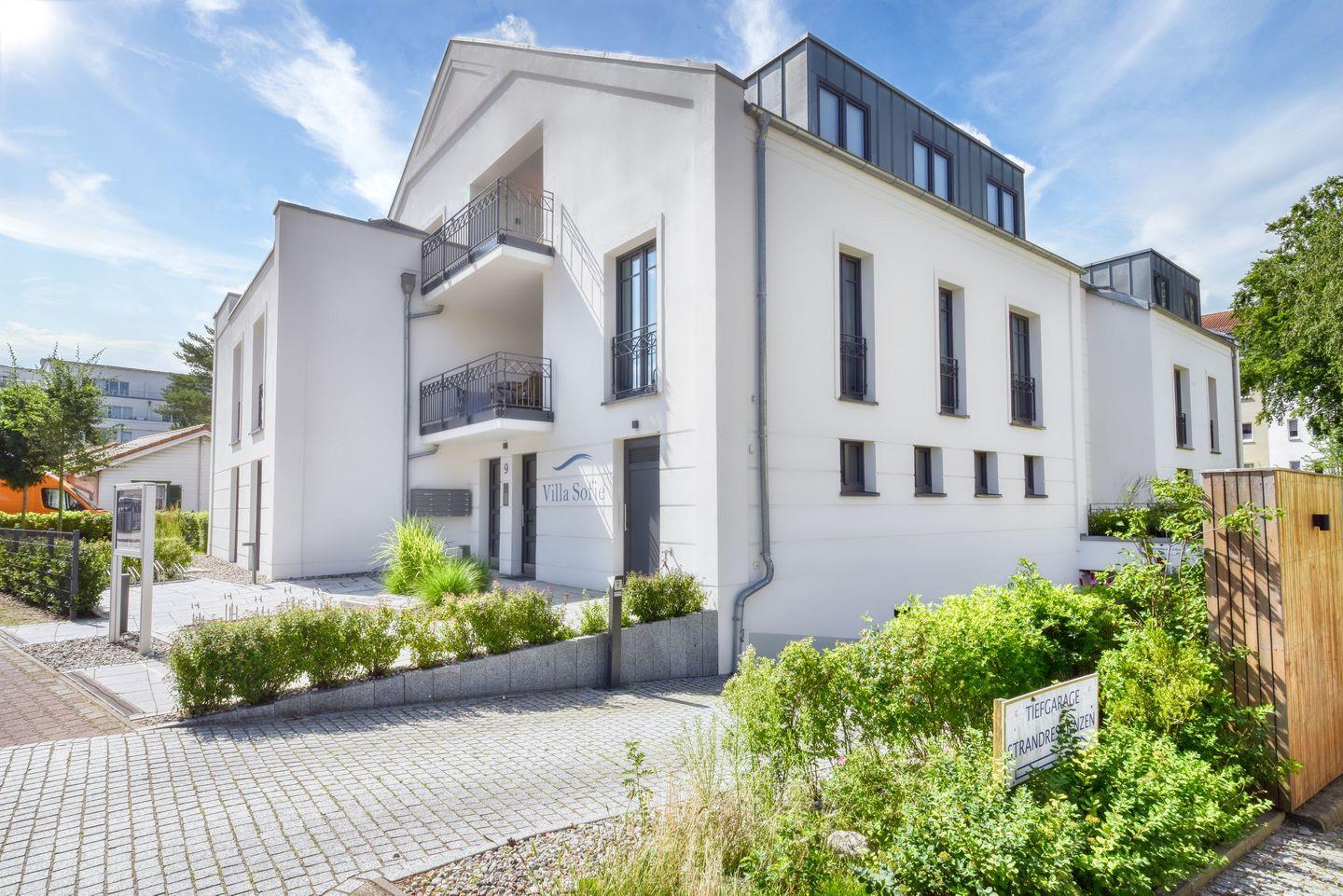 Dieses stilvoll skandinavisch eingerichtete Appartement ist auf ca. 58 m² mit Liebe zum Detail dekoriert und bietet ein erstklassiges Urlaubsambiente. Die gemütlich geschnittene 2-Raum-Ferienwohnung befindet sich in der Villa Sofie in Binz und bietet den perfekten Startpunkt für einen aktiven Urlaub auf Rügen. Da die Villa Sofie erst 2018 gebaut und fertiggestellt wurde, ist das Inventar somit sehr neu und hochwertig. Das Appartement im Obergeschoss der Villa Sofie hat 1 Schlafzimmer mit Doppelbett, Kleiderschrank und Nachttisch. Das Zimmer ist verdunkelbar und bietet genügend Stauraum für das Reisegepäck. Internet und komfortabler PKW-Stellplatz stehen Gästen während des Aufenthalts kostenfrei zur Verfügung. Der Wohnraum hat einen Eingangsbereich mit Kleiderschrank und Garderobe, eine voll ausgestattete Küchenzeile, einen Esstisch und einen gemütlichen Wohnbereich. Vom Wohn- und Essbereich aus kann der teilweise überdachte Balkon betreten werden. Balkonmöbel mit kuscheligen Auflagen bieten das lang ersehnte Wohlfühlambiente, was man sich von einem Urlaub auf Rügen verspricht. Auch Sauna, Waschmaschine und Trockner stehen als Münzgeräte für die Gäste der Villa Sofie bereit.