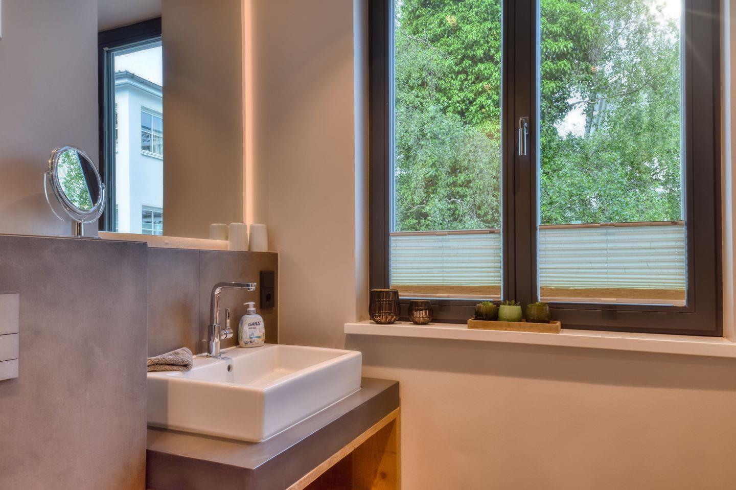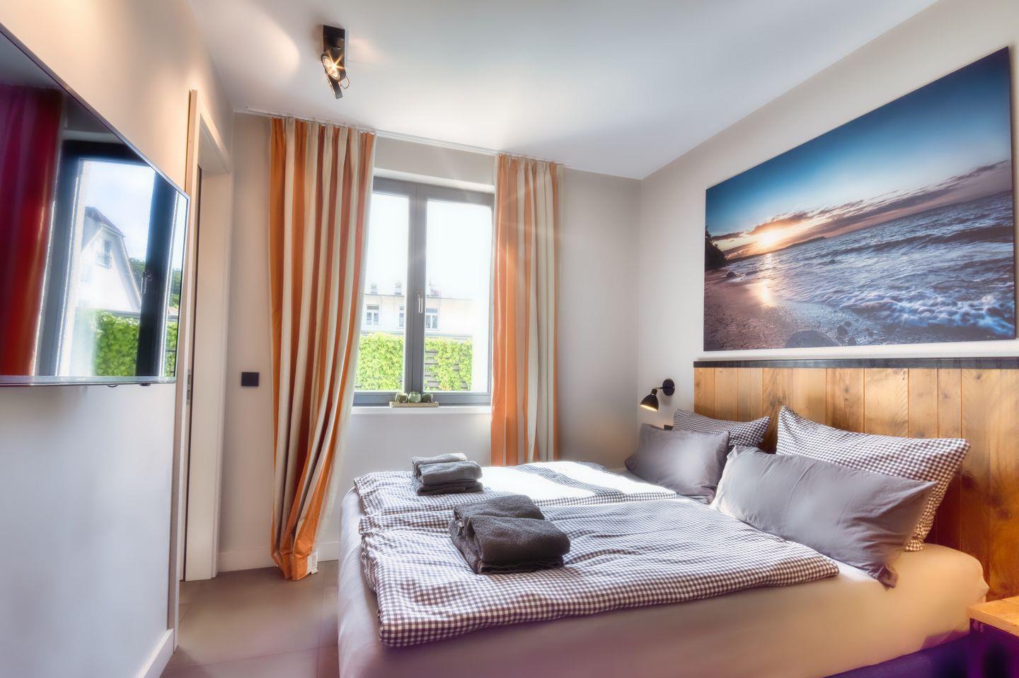Rustikal-maritime Möblierung mit Geschmack und Stil erwartet Sie in der Ferienwohnung Heimathafen im 1. Obergeschoss der Villa Martha in Binz. Die 70 m² große, sonnige Ferienwohnung ist für 1-4 Personen geeignet. In allen Räumen lassen sich ausgesuchte Details entdecken, die den Urlaub hier zu einem unvergesslichen Erlebnis werden lassen. Genießen Sie entspannte Stunden im gemütlichen Wohnraum mit Couch, Ohrensessel und Smart-TV inklusive kostenfrei nutzbaren SKY Sendern. Die Küche ist mit Nespresso-Kaffeemaschine, Filterkaffeemaschine, Wasserkocher, Toaster, Mixer, Geschirrspüler, Backofen, Kühlschrank, Gefrierfach und Kochfeld ausgestattet und bietet die Grundlage für einen geselligen Kochabend oder ein ausgedehntes Urlaubsfrühstück. An den Wohnbereich schließt sich die offene und komplett ausgestattete Küchenzeile mit Essbereich an. Von hier kann man die nach Süden ausgerichtete Sonnenterrasse, ausgestattet mit Balkonmöbeln, betreten. 2 Schlafzimmer mit jeweils einem bequemen Boxspringbett und 2 Badezimmer mit ebenerdiger Regendusche ergänzen das richtige Urlaubsambiente. Ein PKW-Stellplatz in der hauseigenen Tiefgarage und kostenfreies WLAN stehen Ihnen während des Urlaubs zur Verfügung. Zur Anreise finden Sie die Betten frisch bezogen vor und es liegen Handtücher, Badetücher und (bei Zubuchung) das Wellnesspaket bestehend aus Bademantel, Badeschlappen und Saunatuch in Ihrer Ferienwohnung bereit. Dampfsauna, Waschmaschine und Trockner stehen unseren Hausgästen zur Verfügung. Es handelt sich um Münzgeräte. 2017 neu gebaut, begrüßt Sie unsere Villa Martha im Ostseebad Binz. Nur wenige Schritte von der Binzer Seebrücke und den angrenzenden kleinen Boutiquen, Cafés und Restaurants entfernt, können Sie hier Ihren Urlaub zentral und gleichzeitig angenehm stressfrei verbringen. Die rustikal und maritim eingerichteten 2- und 3-Zimmer Ferienwohnungen sorgen für ein idealen Rückzugsort zum Wohlfühlen. Ein besonderes Highlight sind die schönen Loggias und Balkone des Hauses, die einen ungetrübten Ausblick auf die schöne Bäderarchitektur des Ostseebads Binz ermöglichen. Die Villa Martha ist ein schönes Urlaubsziel für Jung und Alt.