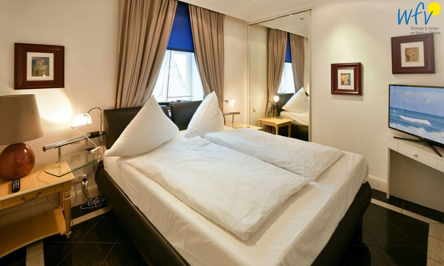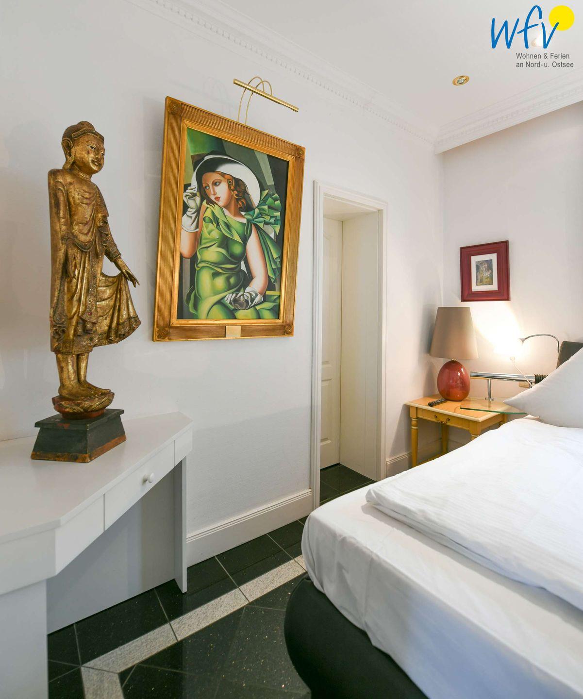 Die Ferienwohnung im idyllischen Ostseebad Binz verfügt über einen großen Wohnraum mit Kamin (ohne Holzvorrat), eine komplett ausgestattete Küche, ein Bad mit Badewanne und ein separates Gäste-WC sowie über eine herrliche Sonnenterrasse (Richtung Süden). Die zwei separaten Schlafzimmer sind mit RUF-Betten, großen Einbauschränken und TV-Geräten ausgestattet. An beide Schlafzimmer schließt sich ein eigenes Bad an. In einem der Schlafzimmer befindet sich ein Doppelbett mit zwei Einzelmatratzen - im zweiten Schlafzimmer besitzt das Bett eine durchgehende Doppelmatratze (1,60 x 2m).