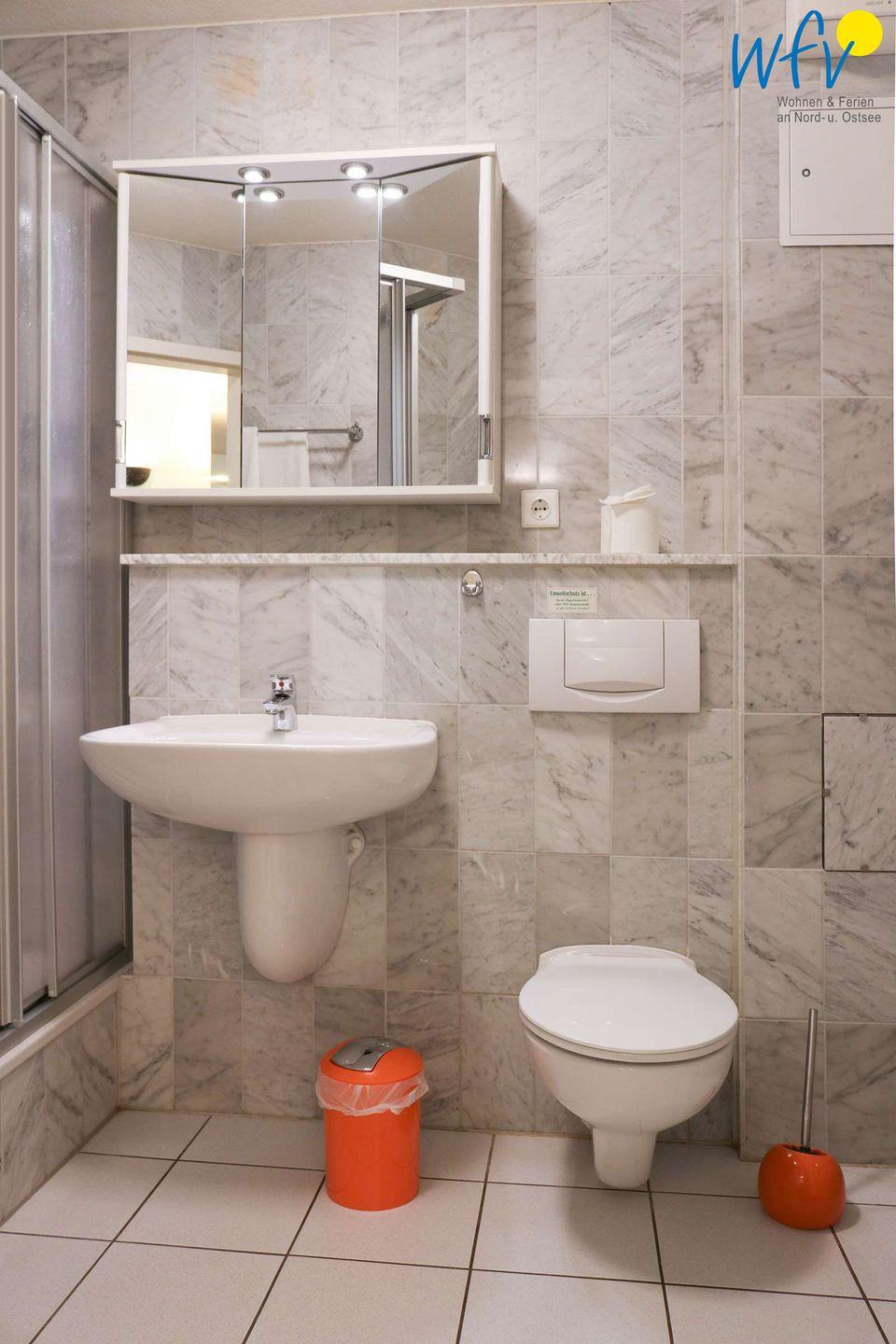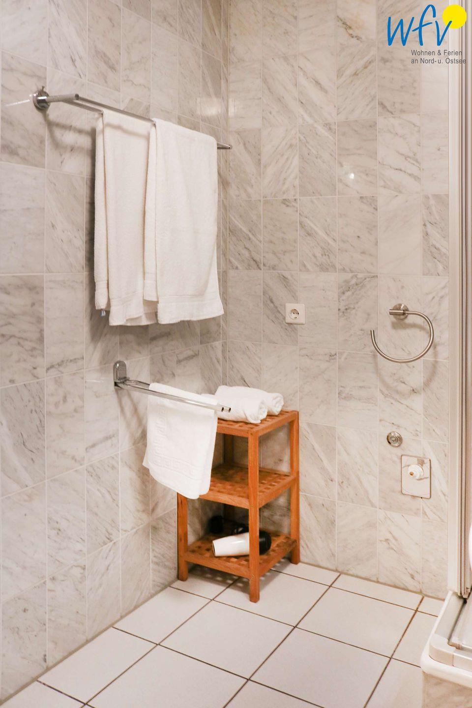 Die Ferienwohnung ist gefliest, das Duschbad komplett in Marmor ausgestattet.