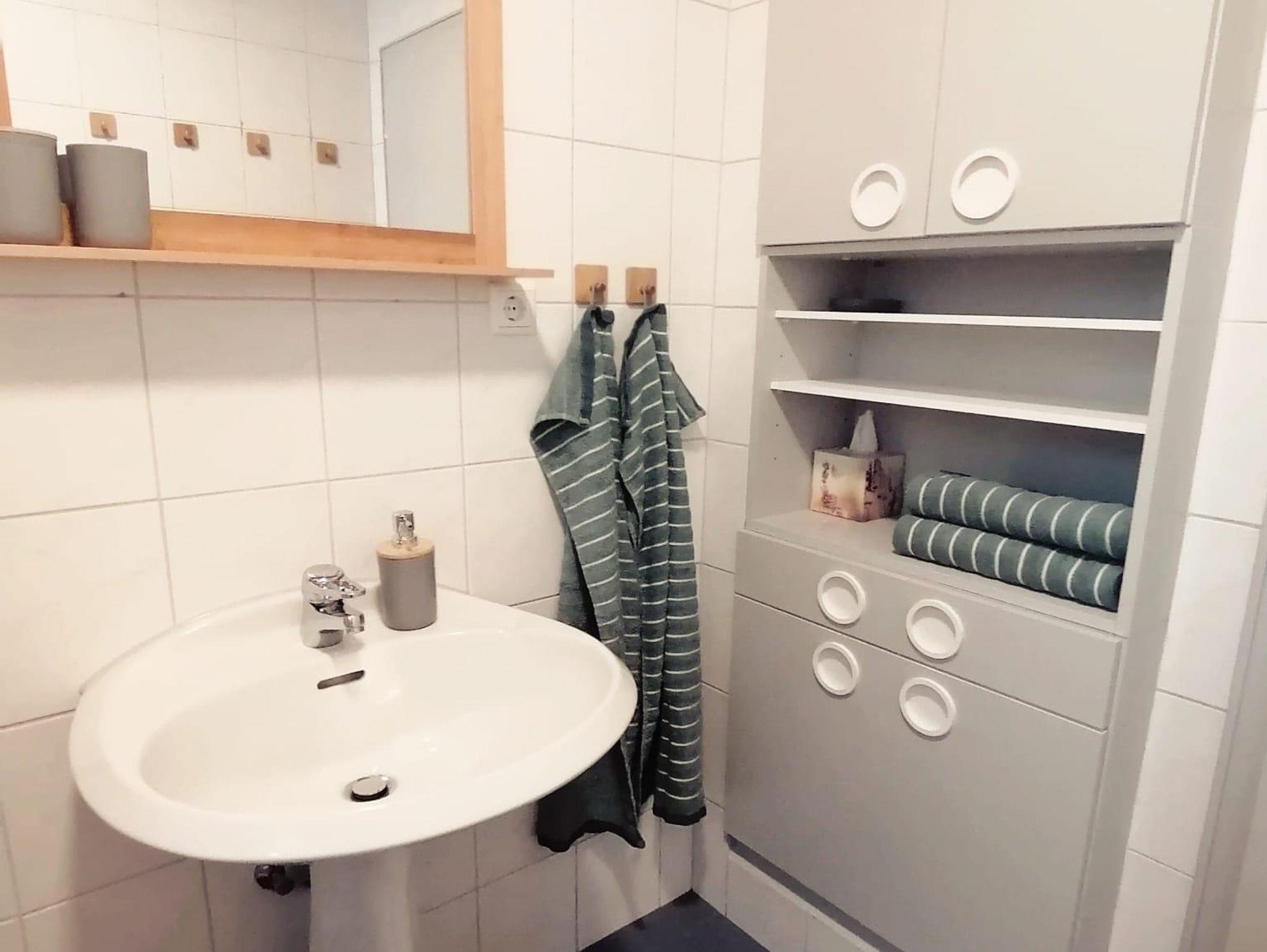 Im Badezimmer findet ihr neben Hand- und Badetüchern und Seife auch eine kleine Auswahl an Bad-Basics, falls man die Zahnbürste doch mal vergessen hat.