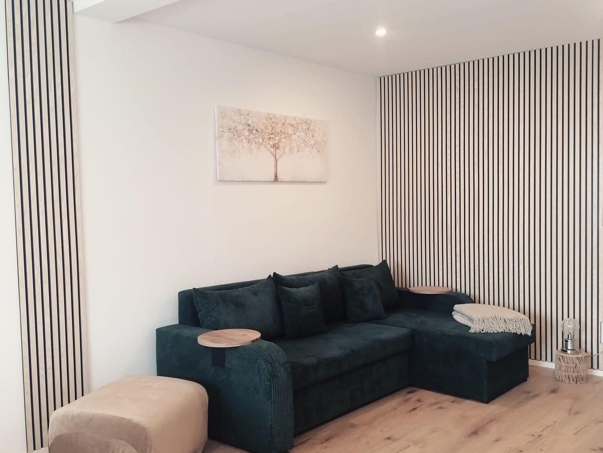 Entspannung findet ihr auf dem großen Sofa im Wohnzimmer. Hier könnt ihr die Füße hochlegen und einen Film bei Magenta TV schauen oder ein Buch aus unserer Buchsammlung lesen. Das Sofa ist ganz leicht ausziehbar und bietet für zwei weitere Personen Platz zum Schlafen.