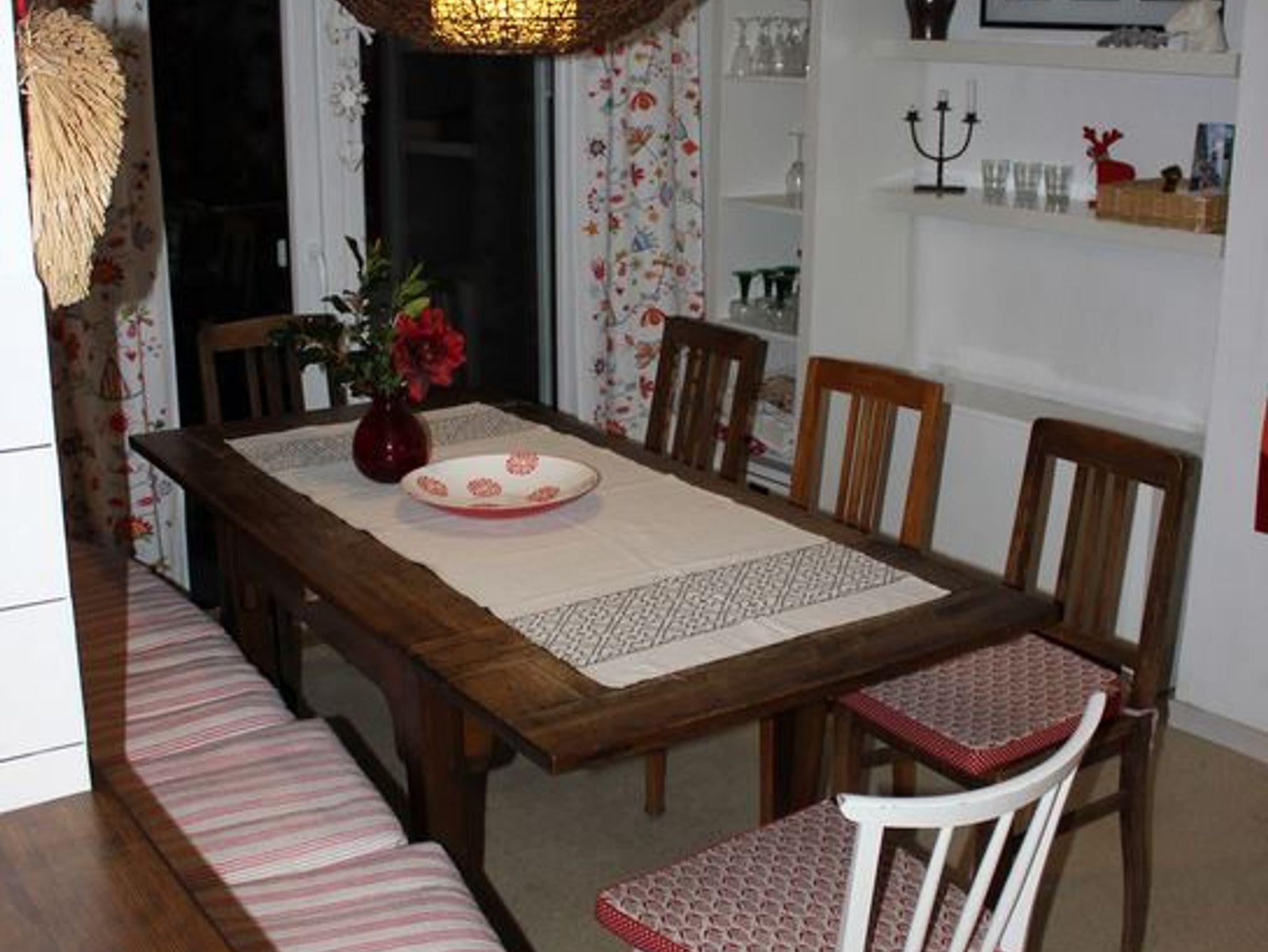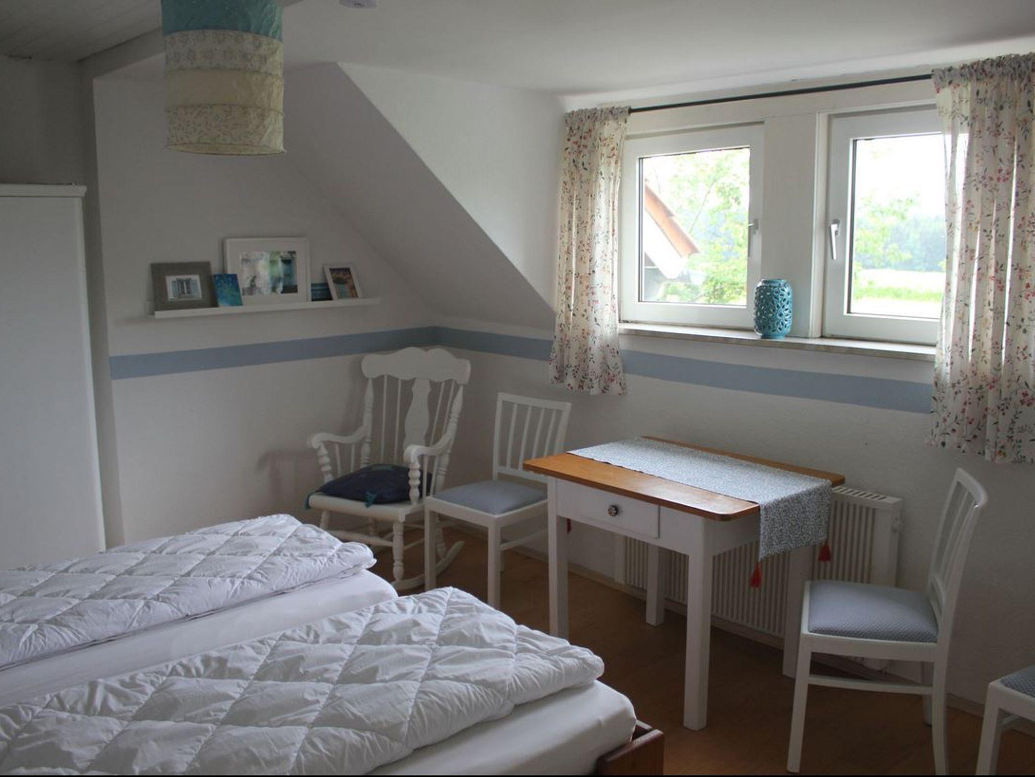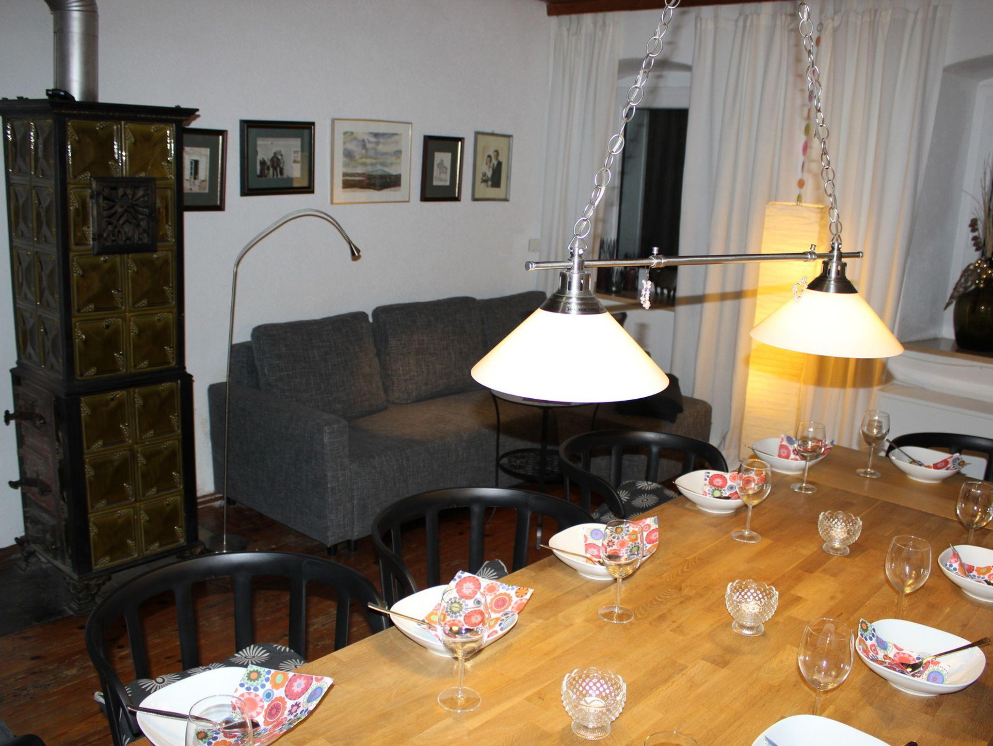 Das Haus wird ab vier Personen und nur als Ganzes vermietet. Es bietet Platz für 13 Personen, besitzt sechs Zimmer (vier Doppel-, ein Einzel- und ein Vierbettzimmer/Doppel plus Doppel im Annex), eine komplett ausgestattete große Küche mit allen wichtigen Elektrogeräten, einem großen Eichentisch und einem antiken Holzofen, ein Wohnzimmer mit großem Buchentisch, Jugendstil-Kachelofen und TV-Gerät, zwei Toiletten, drei Duschen (zwei im 1. Stock, eine im Erdgeschoss), diverse Nutzräume (Speisekammer, Waschküche, Vorratsraum) und ein großes Gartenhaus mit Sauna und Extra-Dusche - und hat WLAN. Es ist mit Holz- oder Laminatböden ausgestattet und für Allergiker geeignet. Es gibt zwei geräumige Terrassen (eine mit direktem Zugang von der Küche aus, eine windgeschützt und überdacht zum Garten hinter dem Haus hin). Vor dem Haus befindet sich ein Blumen- und Nutzgarten, hinter dem Haus ein riesiger Rasengarten (3000 qm) mit Schaukel, Fußballtor und großer Feuerstelle (Lagerfeuer) – ein ideales Spielgelände für kleine und große Kinder.