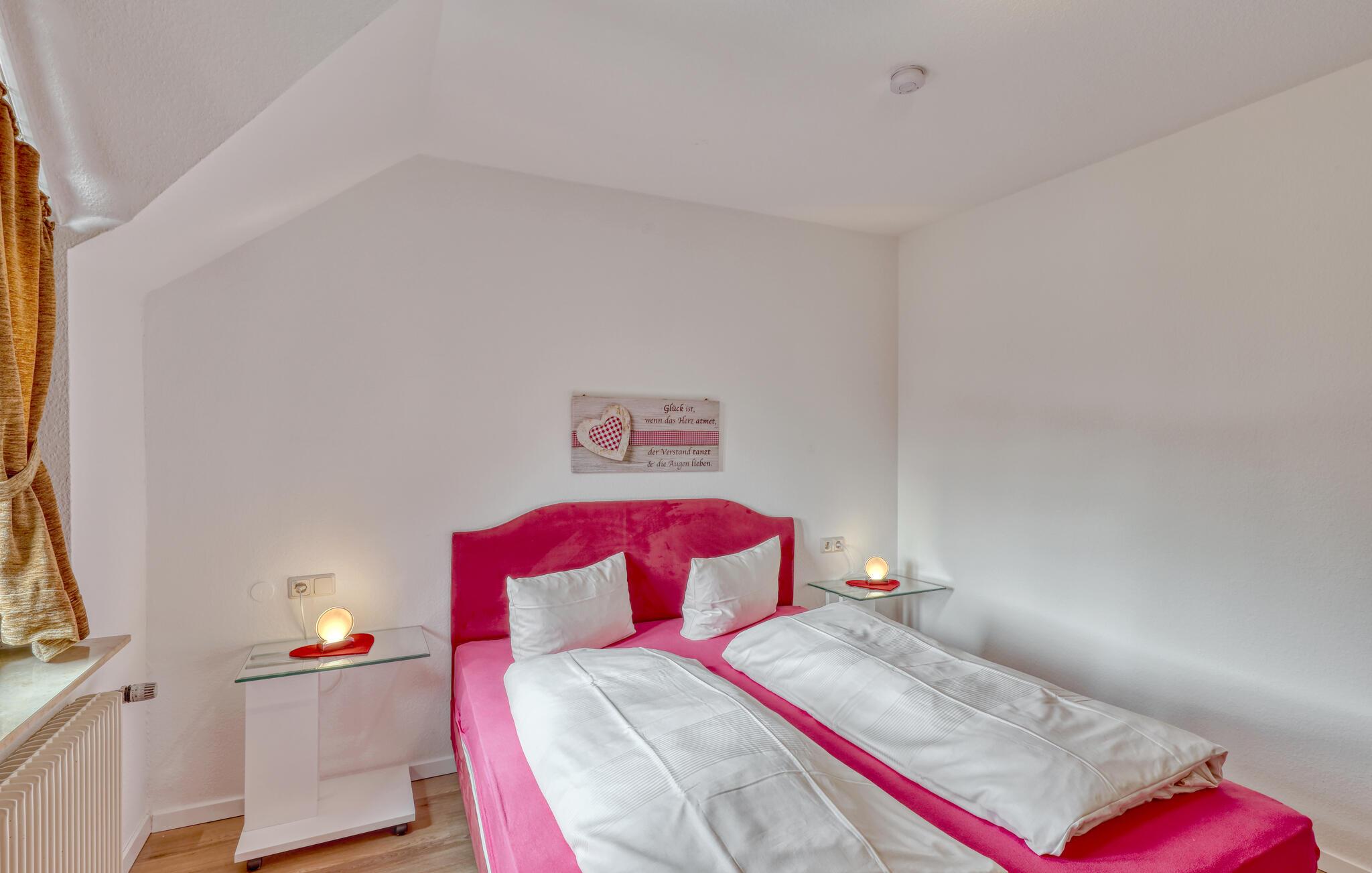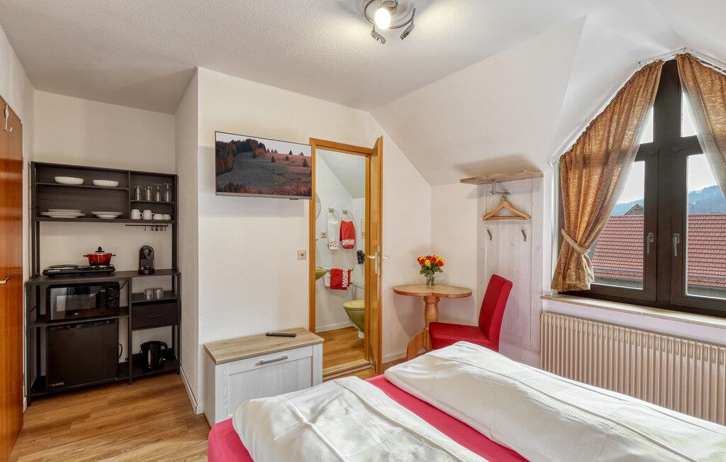 Tilbring avslappende dager som par i ferieleiligheten i nærheten av Bischofsheim. Kom inn og føl deg straks som hjemme. Leiligheten har en romslig dobbeltseng med komfortable møbler for avslappende netter. En praktisk kjøkkenkrok står til din disposisjon, perfekt for små måltider eller en avslappende ettermiddagste. Avslutt ferien med en god film og nyt den hyggelige stemningen i rommet sammen.