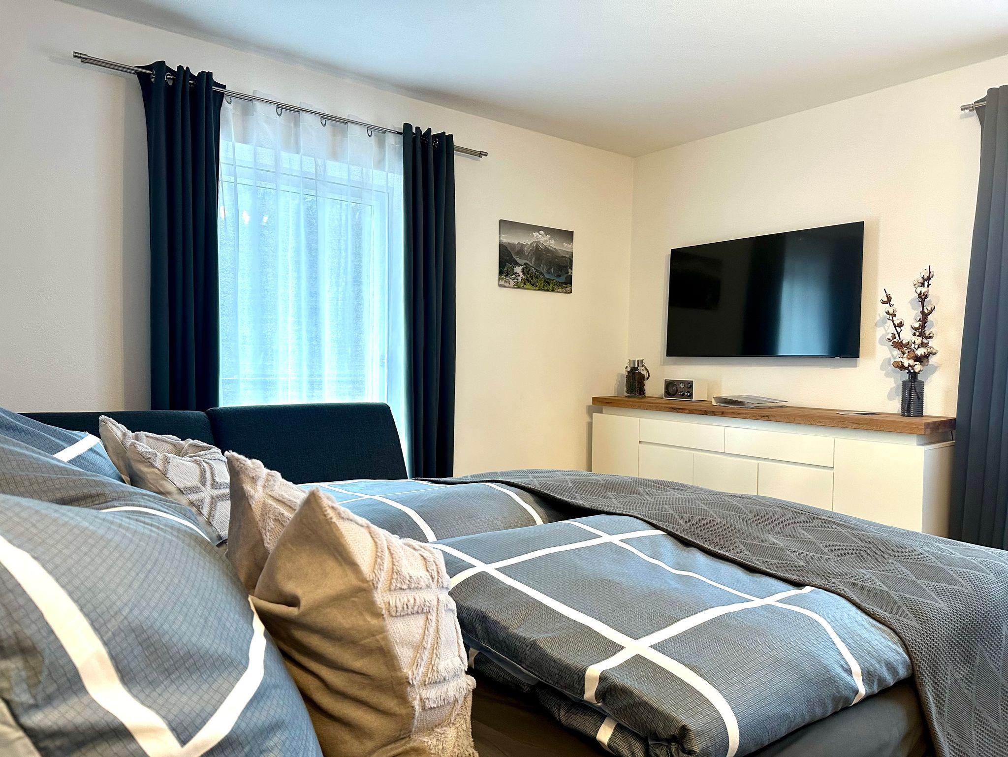 3-Zimmer-Ferienwohnung im 1. Stock mit ca. 100 m² in Bischofswiesen Winkl mit Blick auf dem Untersberg, Jenner, Hohen Göll und auf die schlafende Hexe. Die Ferienwohnung verfügt über zwei Schlafzimmer, einem Wohnzimmer, einer separaten Küche und einem Bad mit Regendusche und Badewanne.Die Küche ist mit allen gängigen Elektrogeräten hochwertig ausgestattet. Ebenso ist sie mit einer Kaffeemaschine mit Mahlwerk, einem Wasserkocher und mit allen Utensilien was man zum Kochen benötigt ausgestattet. Die Couch im Wohnzimmer kann als Schlafcouch für weitere 2 Personen genutzt werden. Die bequeme Matratze hat eine Liegefläche von 160x200 cm. Von fast allen Zimmern gelangen Sie auf den Balkon. In den Schlafzimmern finden Sie jeweils ein Boxspringbett (180x200 cm), je einen Kleiderschrank und je einen weiteren Fernseher vor. Für Ihr Auto steht Ihnen ein Freistellplatz zur Verfügung.