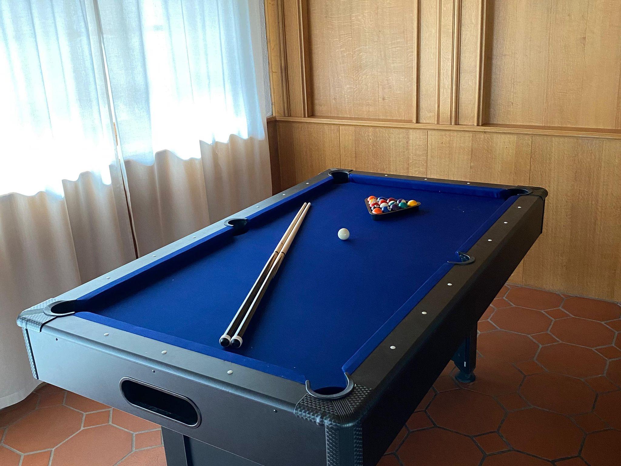 Entspanne Dich im offenen Wohnzimmer, das mit einer bequemen Couch und einem Billardtisch ausgestattet ist – ideal, um den Abend ausklingen zu lassen oder einen entspannten Nachmittag zu verbringen. Die Wohnung ist darauf ausgerichtet, Dir Komfort und eine herzliche Atmosphäre zu bieten.