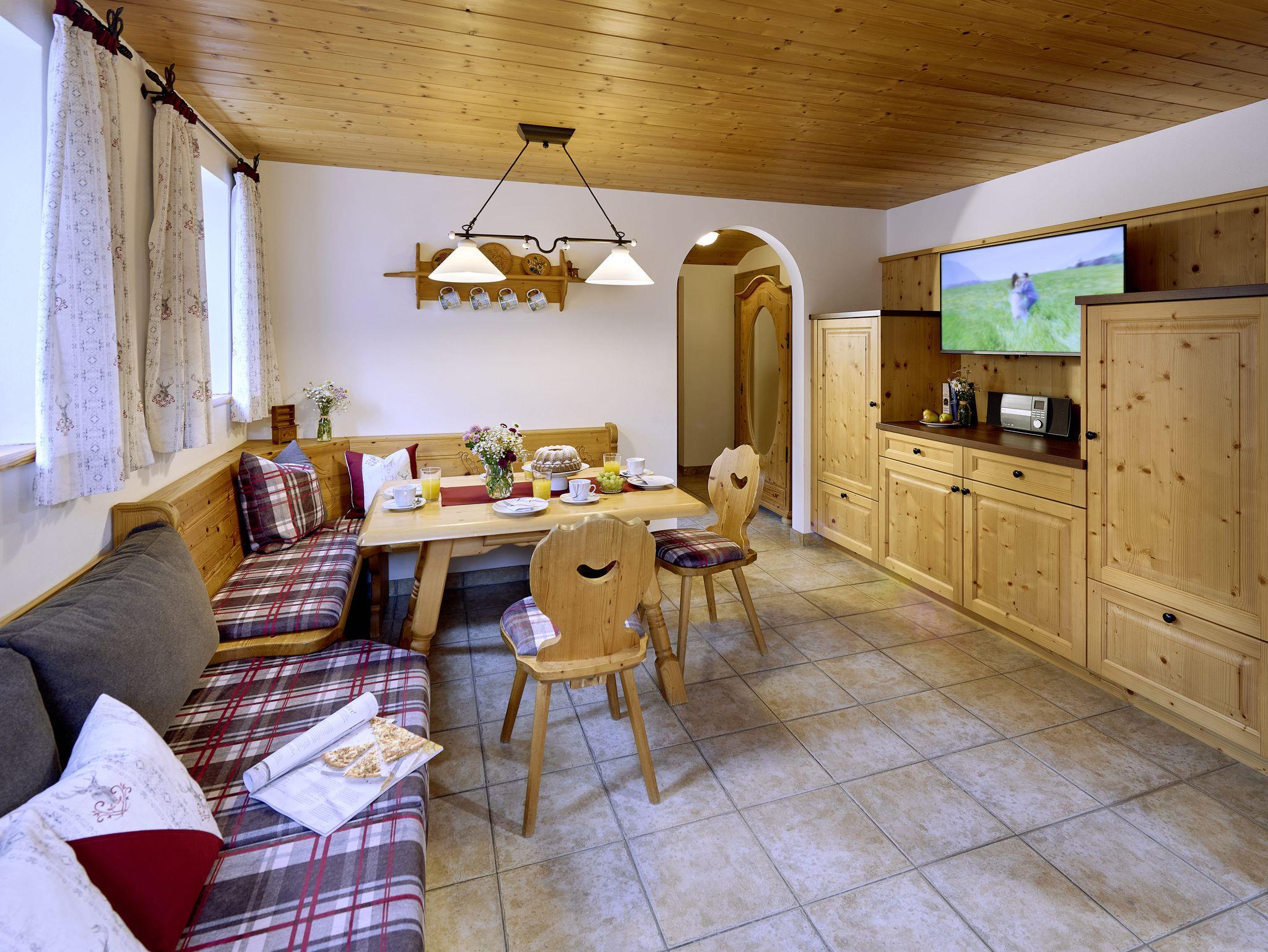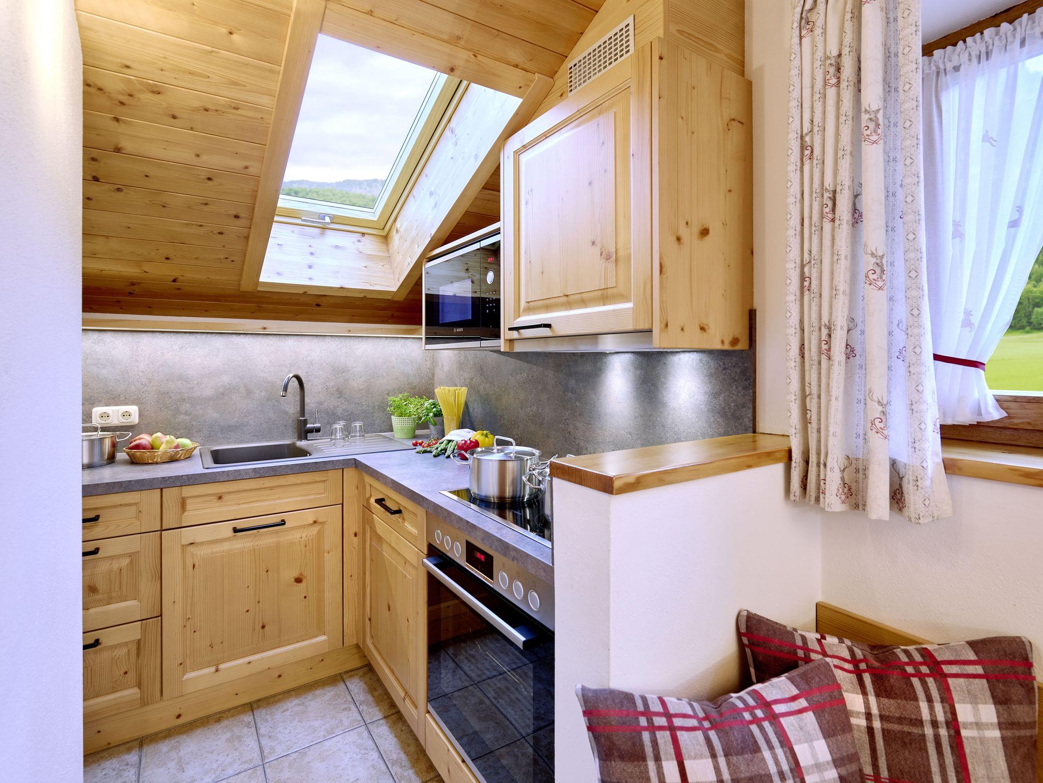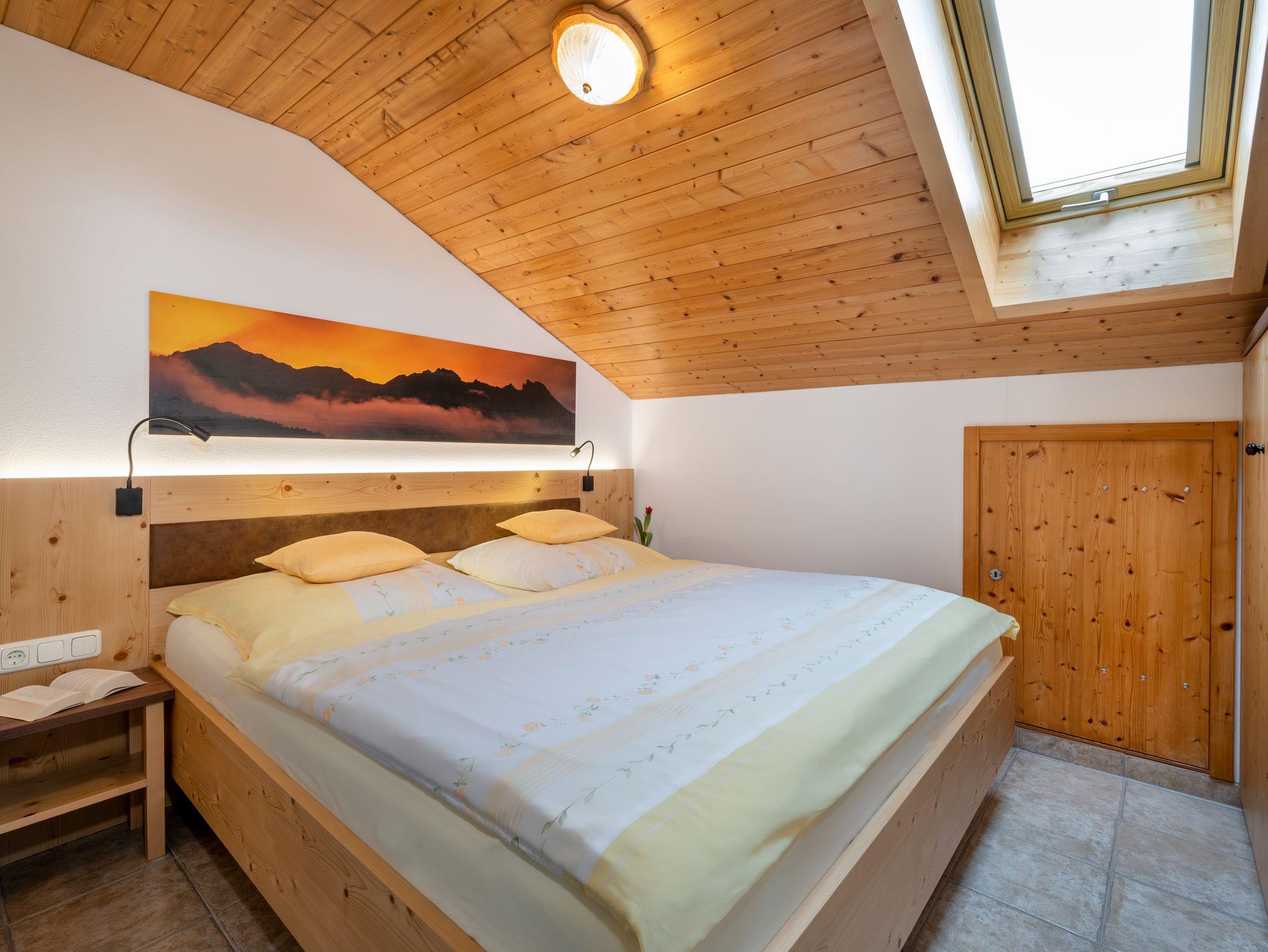 Klein, aber fein! Sie bietet mit ihren 45 m² und dem bayerischen Landhausstil die gemütliche Atmosphäre einer Dachgeschosswohnung für 1 – 4 Personen und ist vom DTV mit 4 Sternen klassifiziert. Ausgerichtet zu unserem Hausberg hin werden Sie die Schlafende Hexe lieben. Der Wohnbereich besticht durch warme Rottöne und der Einrichtung im Landhausstil mit Echtholzmöbeln. Genießen Sie leckere Mahlzeiten am Esstisch oder gönnen Sie sich ein Schläfchen auf der komfortablen Couch! Auch diese Wohnung verfügt über zwei kleine Schlafzimmer, jeweils mit Doppelbetten. Die Dachfenster sind mit Verdunklungsrollos ausgestattet und tagsüber für eine helle und freundliche Atmosphäre und nachts für einen ungestörten Schlaf. Die Küche ist hier in den Wohnbereich integriert und mit modernem Komfort ausgestattet, insbesondere einer Spülmaschine, um Ihnen im Urlaub so viel Arbeit wie möglich abnehmen zu können. Ein eigenes Balkonabteil (über den 1. Stock zugänglich) auf der Westseite steht zu Ihrer alleinigen Verfügung. Gönnen Sie sich ein Sonnenbad oder lassen Sie den Tag mit einem Gläschen Wein ausklingen - es ist ganz Ihnen überlassen! Bei Bedarf stellen wir Ihnen gerne zusätzlich einen Babyhochstuhl und/oder ein Kinderbett zur Verfügung.