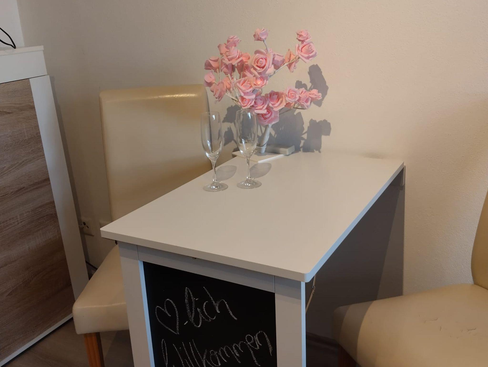 Das im Herbst 2023 frisch renovierte Appartement verfügt über einen Schlaf- und einen Wohnbereich. Im Wohnbereich befindet sich neben einer Schlafcouch und Kabel-TV sowie Radio eine gut ausgetattete Küchenzeile. Neben zwei Herdplatten und einem Kühlschrank mit Gefrierfach, findet sich eine Auswahl an Töpfen, Geschirr, Besteck und Spülmittel sowie ein Wasserkocher.