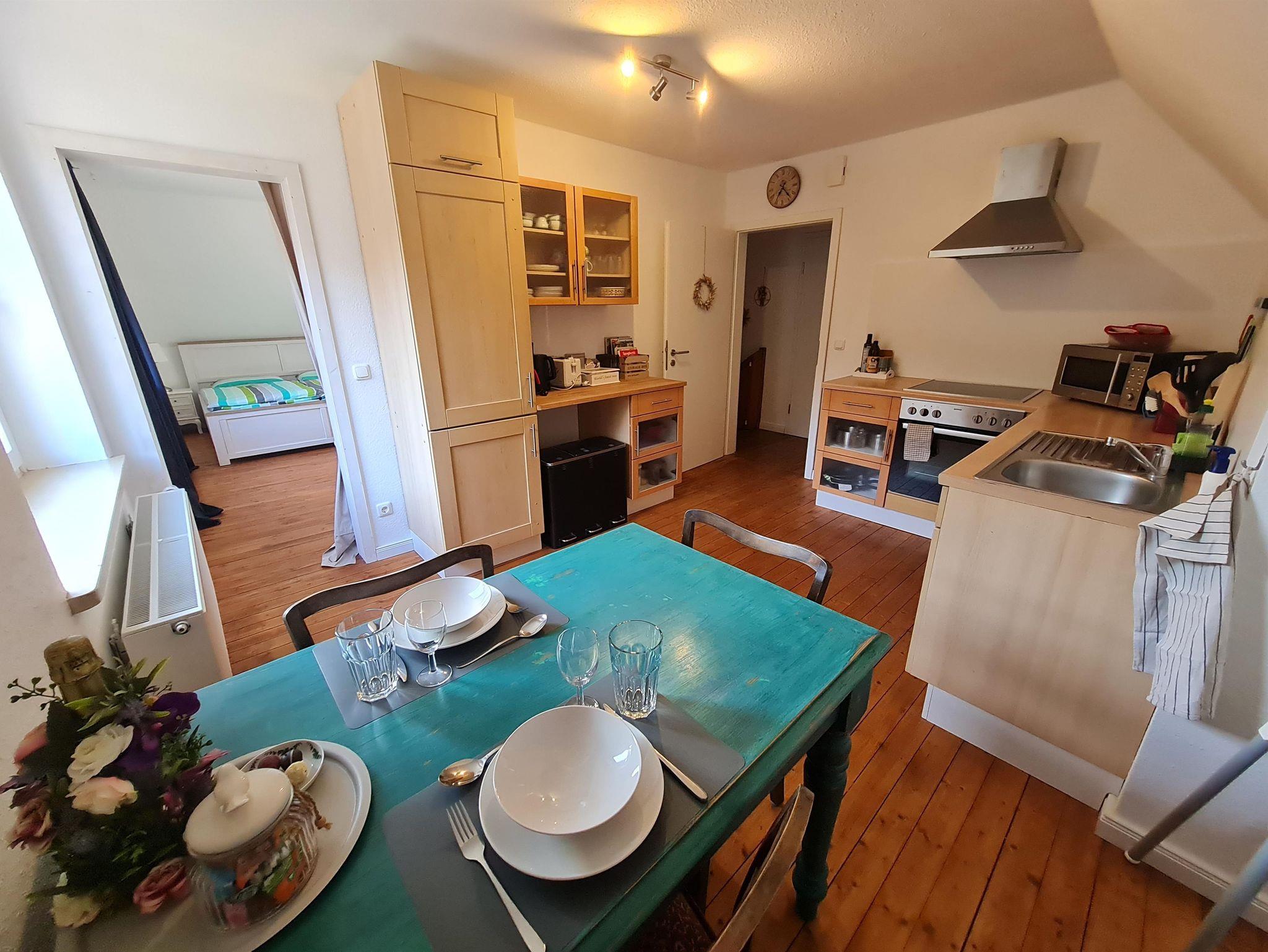 Hallo, wir sind Lisa und Andreas und heißen euch herzlich bei uns in der Ferienwohnung Borsteler Kuhlen willkommen. Entspannt euch in dieser besonderen und ruhigen Unterkunft in der schönen Lüneburger Heide. Wir haben ein altes Bauernhaus komplett renoviert und saniert, dabei haben wir versucht Neu und Alt ein wenig zusammenzubringen, wobei das Neue mittlerweile überwiegt. Das Badezimmer wurde neu gemacht, den alten Boden im Rest der Wohnung haben wir dagegen belassen und aufgehübscht. Es finden sich alte Gegenstände, wie Geschirr von Oma, und neue Elemente zusammen. Es gibt ein 1,80m Doppelbett und ein kleines Schlafsofa. So haben bis zu 4 Personen Platz.