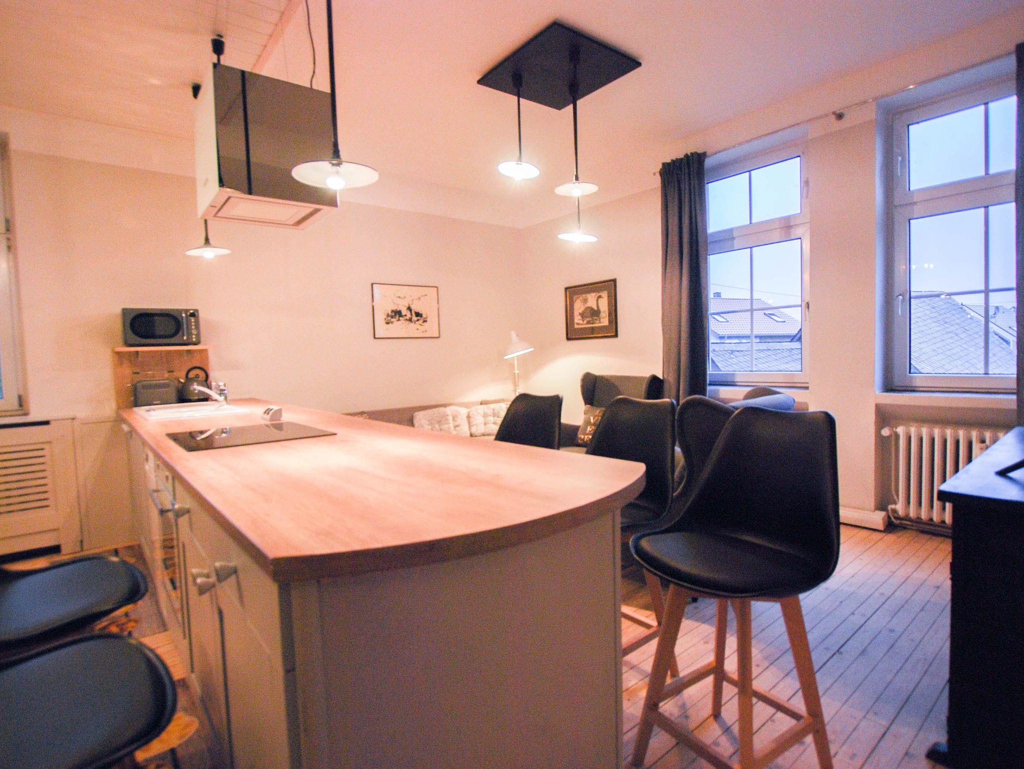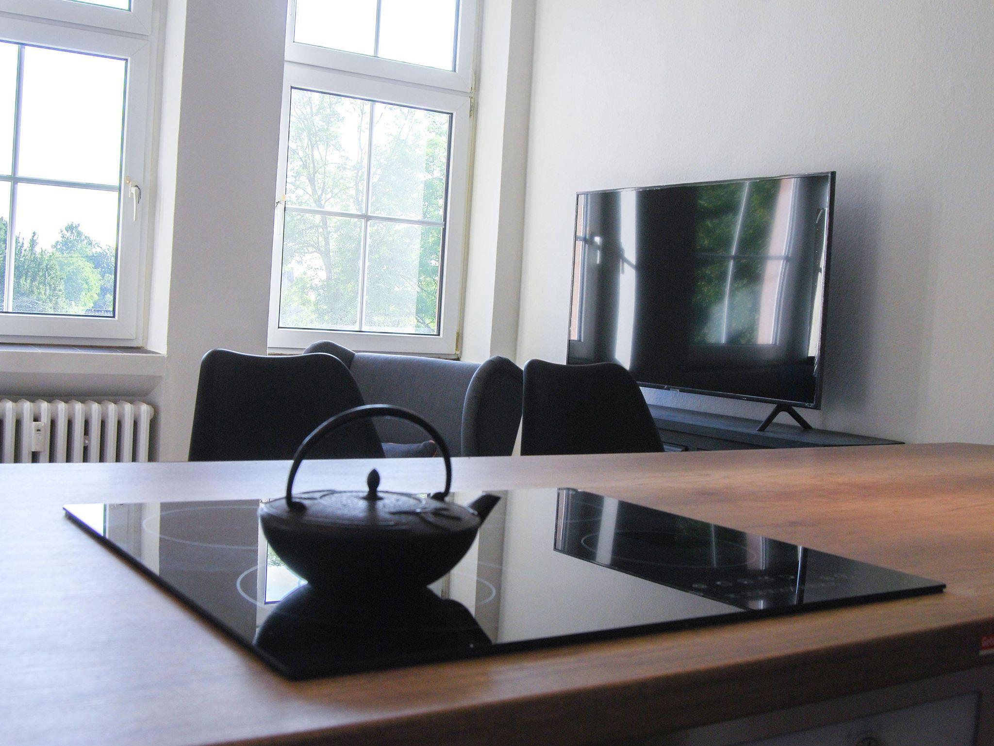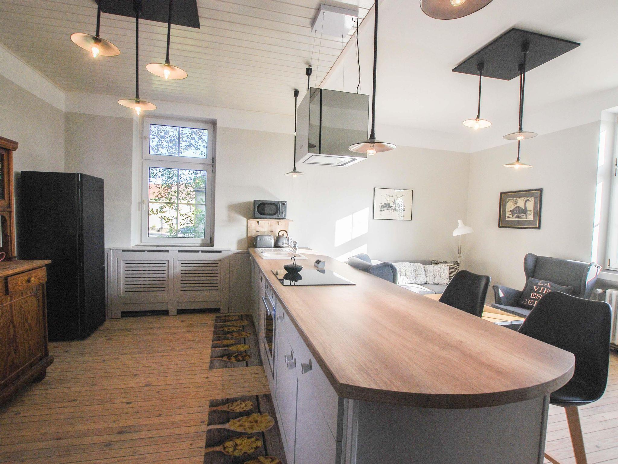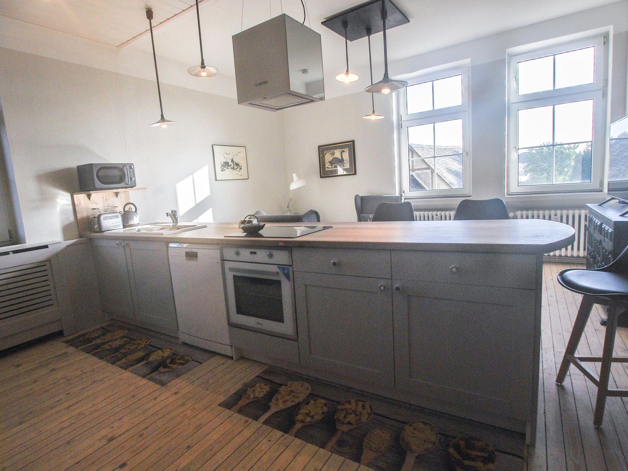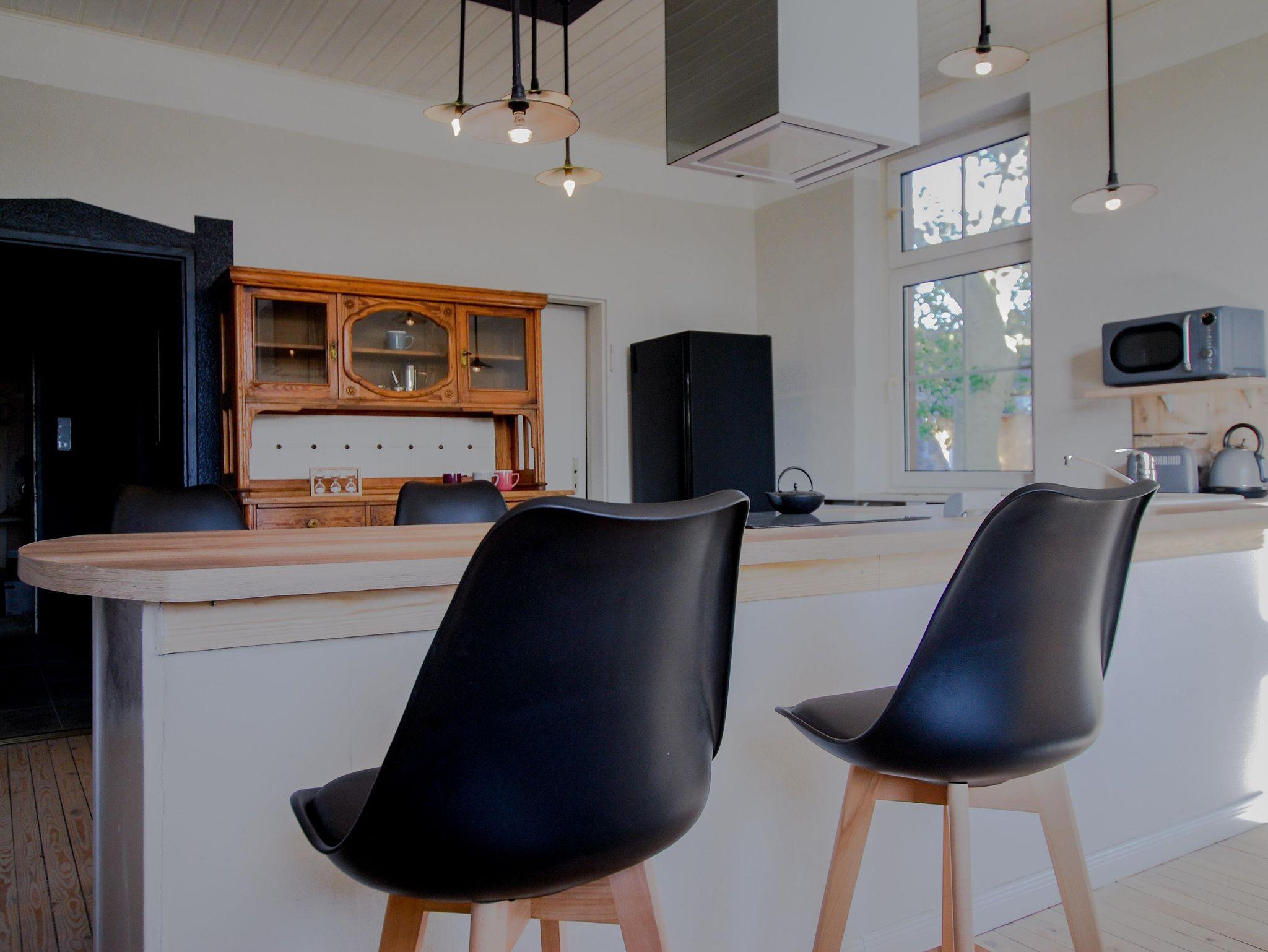 - Küchen- / Wohnbereich: Ein besonderes Highlight ist der offene Wohn-, Ess- und Küchenbereich. Gemeinsam kochen und den Tag bei einem Glas Wein Revue passieren lassen. Entspannen Sie sich beim Lesen eines Buches auf dem Sofa, aktualisieren Sie Instagram mit Reiseimpressionen oder schauen Sie sich einen Film auf dem 55-Zoll-4K-Smart-TV an. Alles kann zusammen gemacht werden. Niemand muss in der Küche verschwinden, um das Abendessen zuzubereiten. Sie können direkt an der XL-Kücheninsel in der Mitte des Raumes zusammen essen.