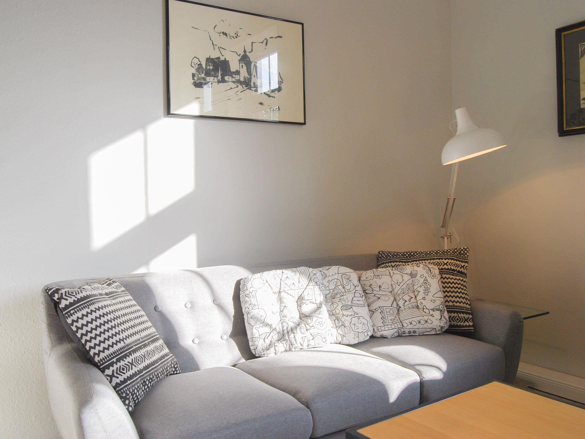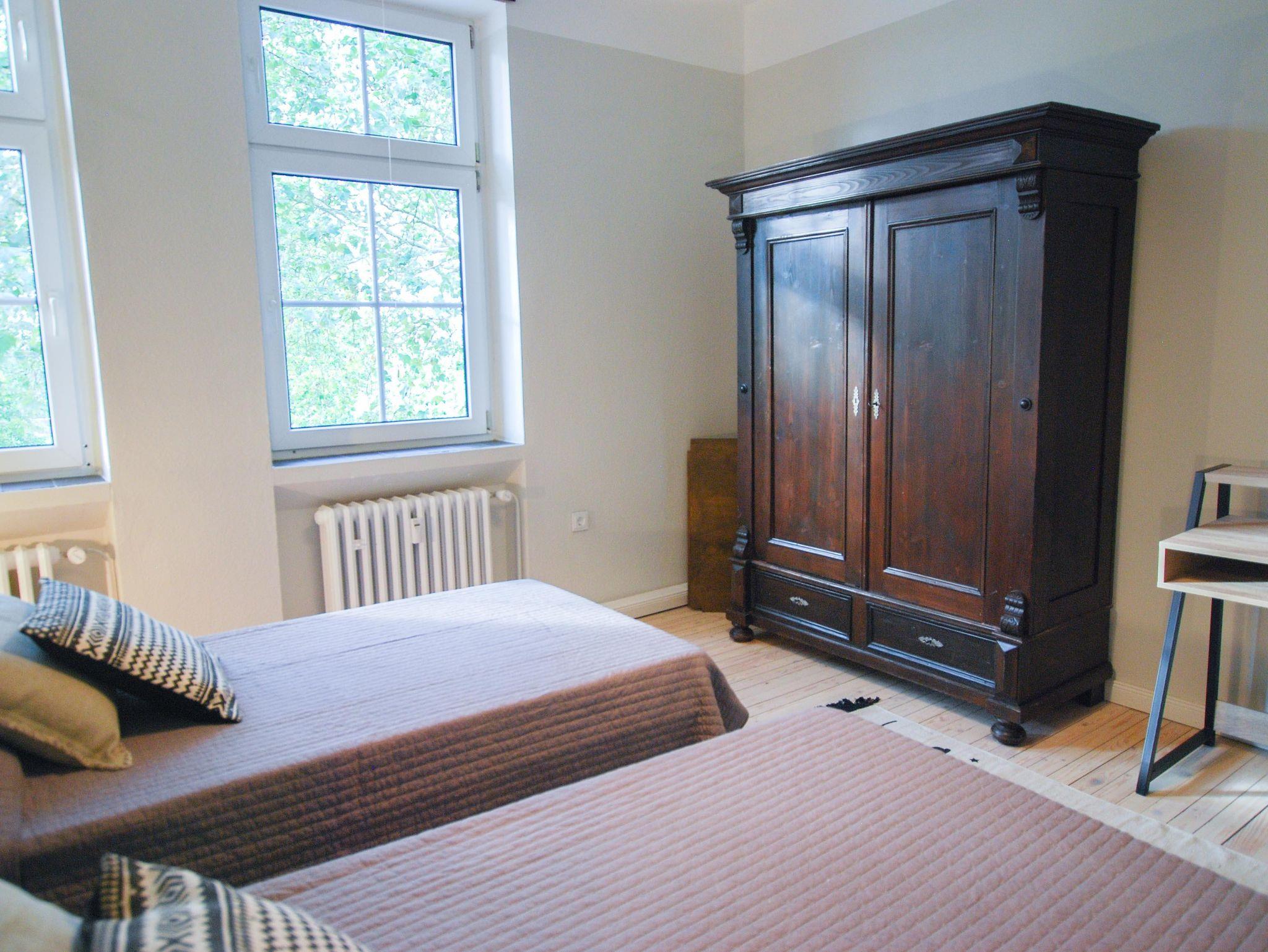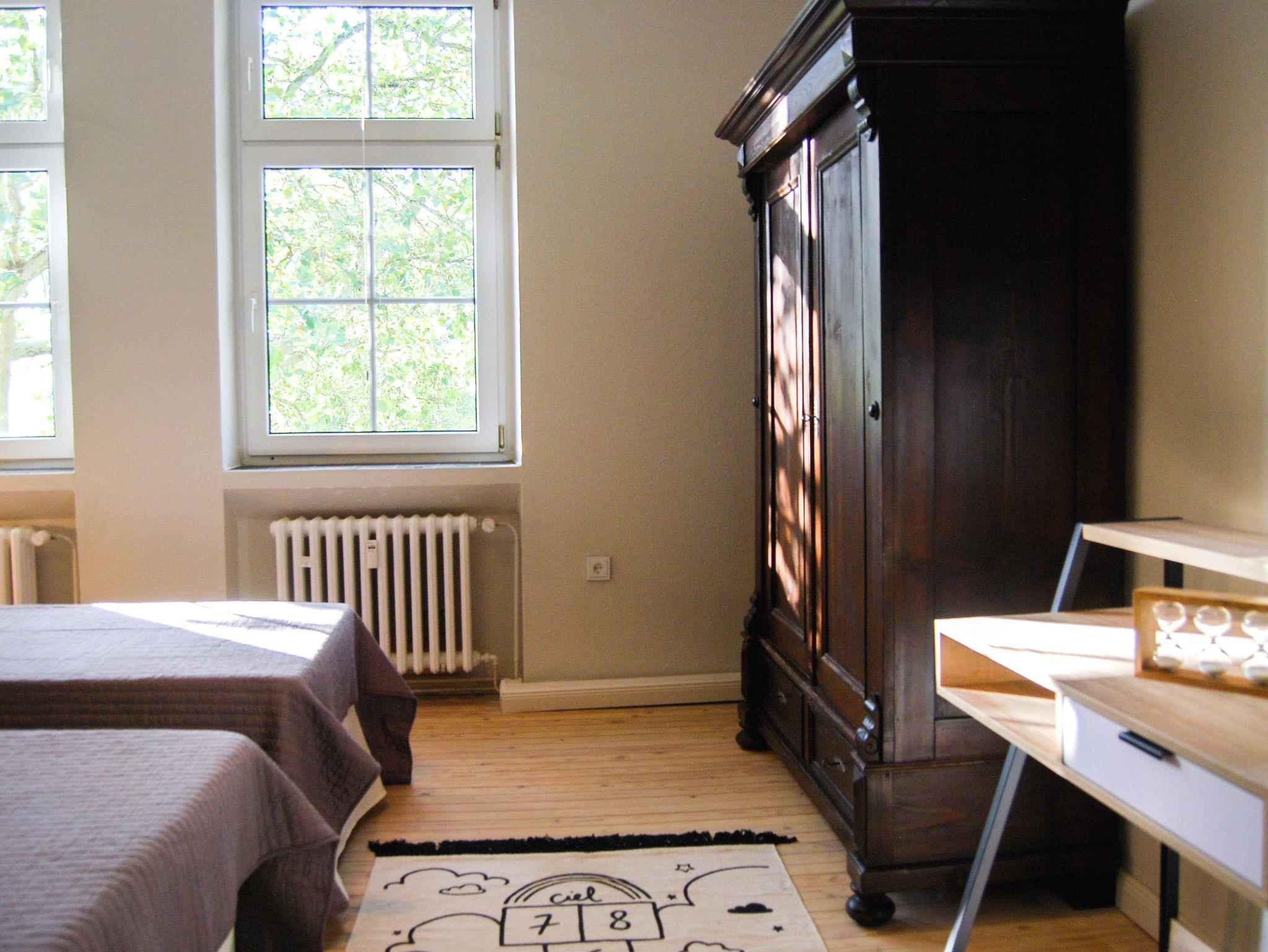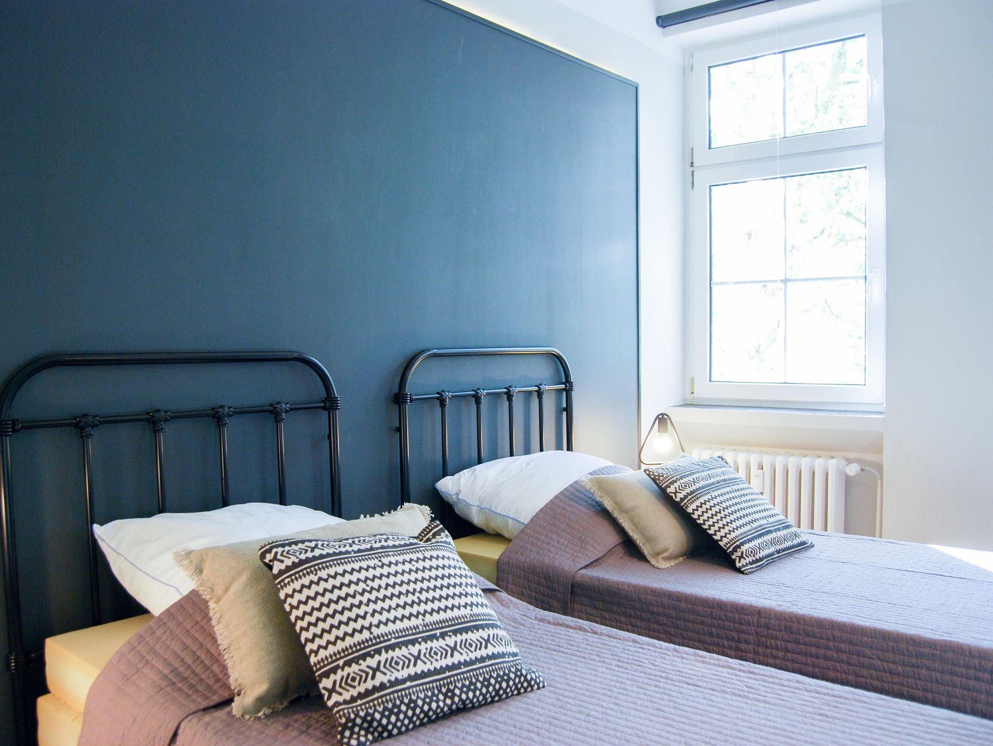 - Schlafzimmer 2: Das zweite Schlafzimmer mit originalem Holzfußboden verfügt über zwei Einzelbetten (90 cm x 200 m), einen Schreibtisch und einen großen Kleiderschrank.