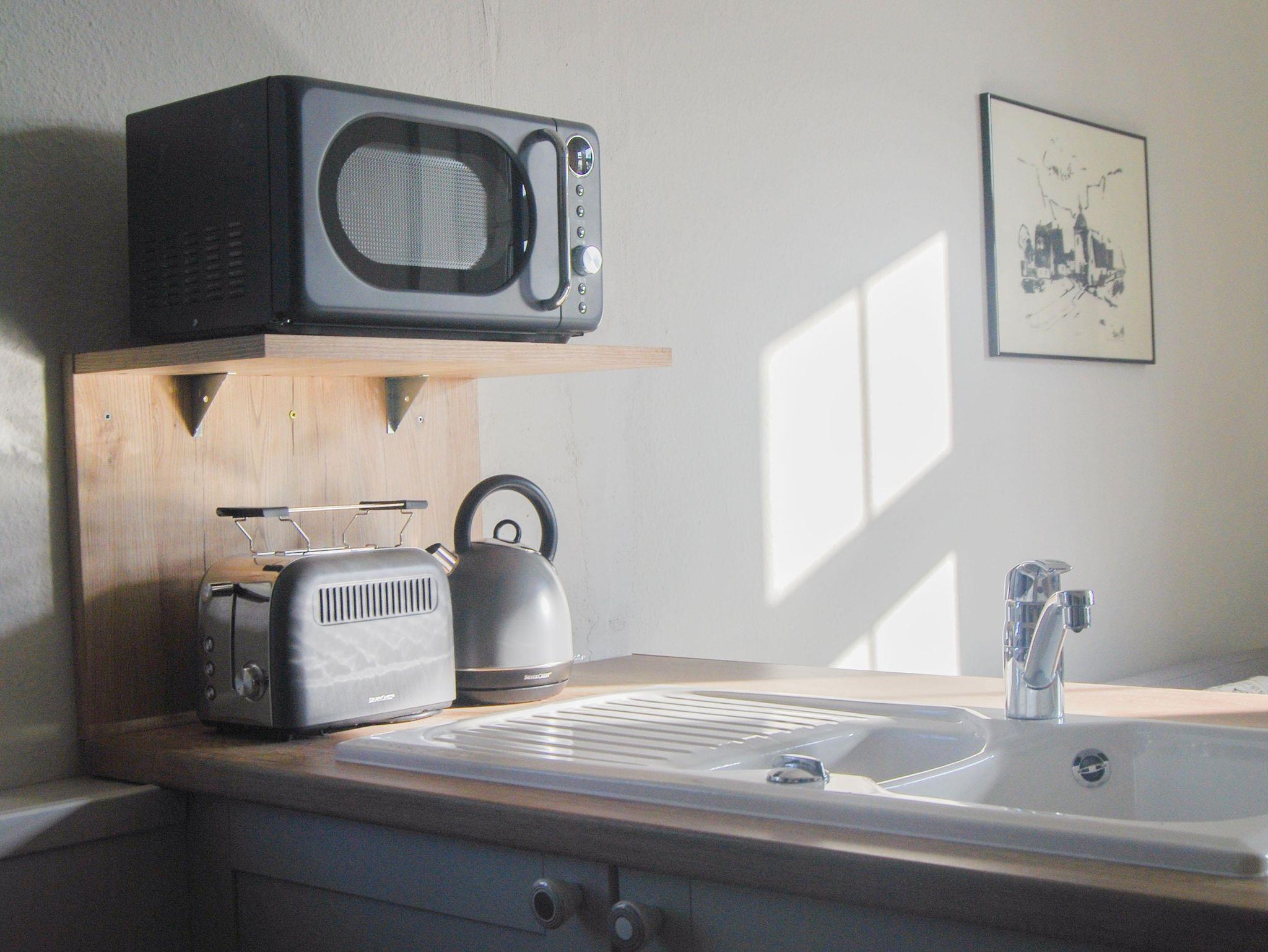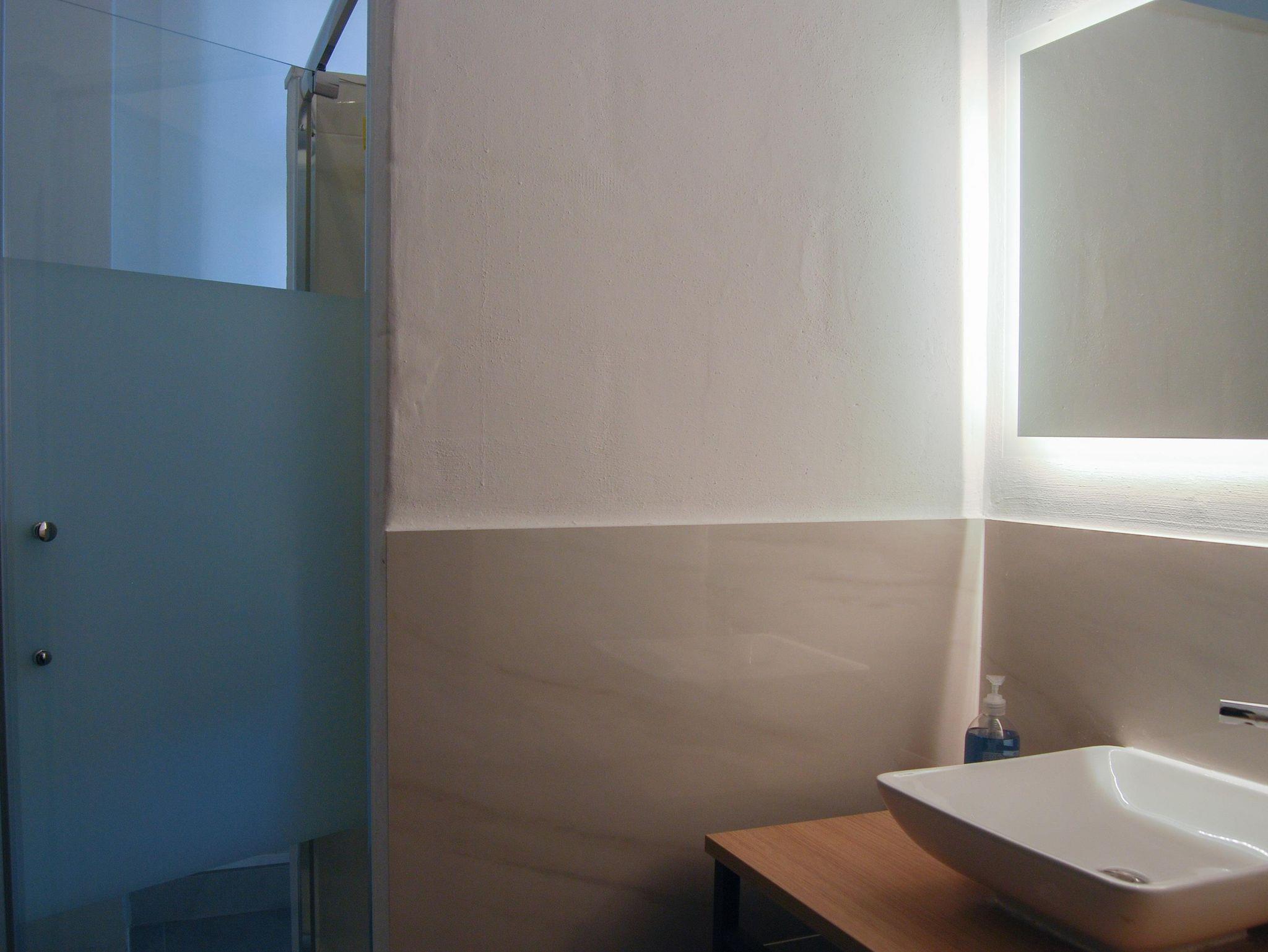 - Bad: Das Badezimmer wurde komplett renoviert und mit einer Dusche (90 x 90), Waschtisch und Spiegel, Haartrockner und Steckdosen ausgestattet.