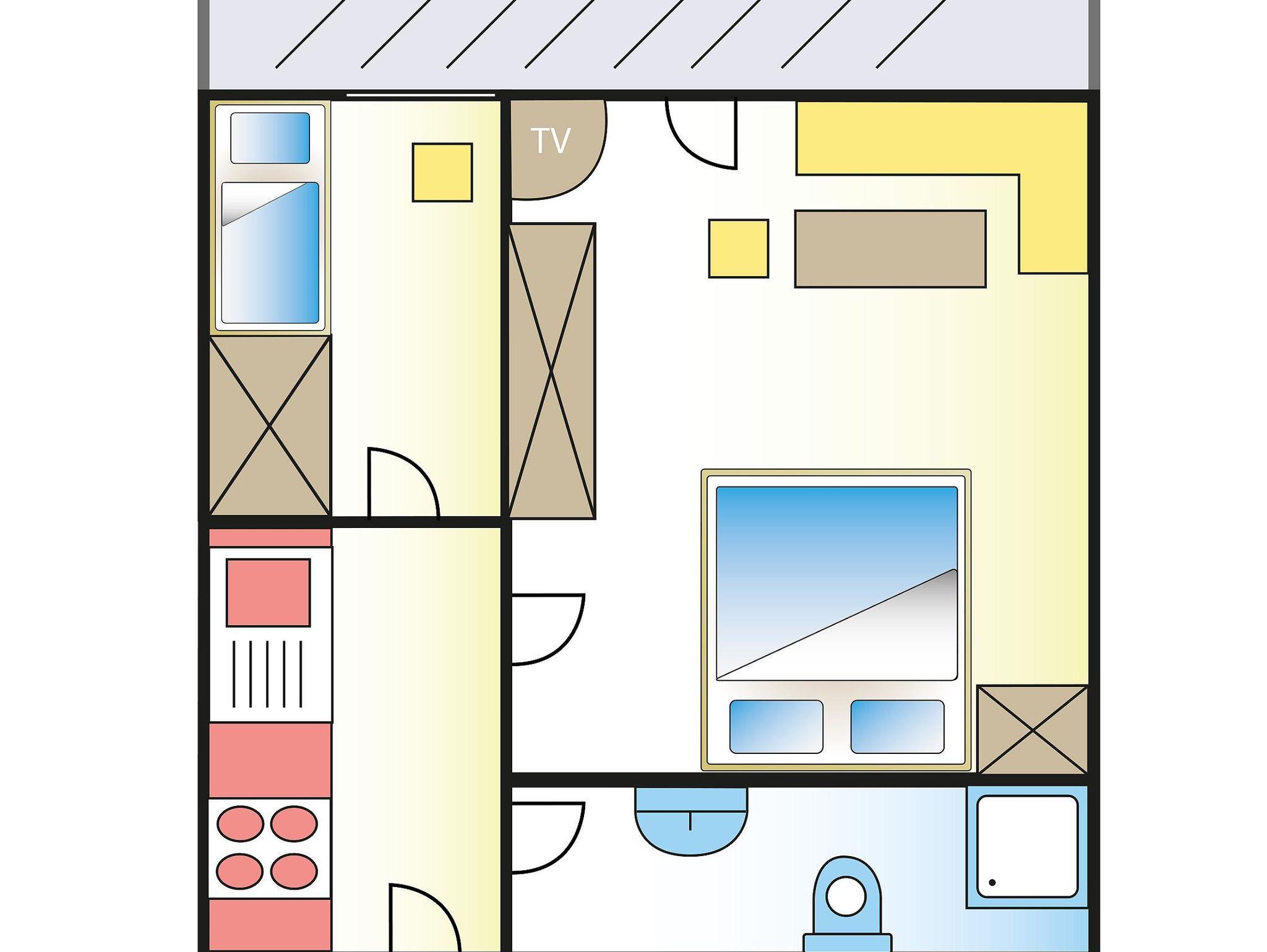 Ferienwohnung (31qm) für 2 Erwachsene und 2 Kinder. Mit Balkon, Vorraum mit Küchenzeile, großzügiges Badezimmer.