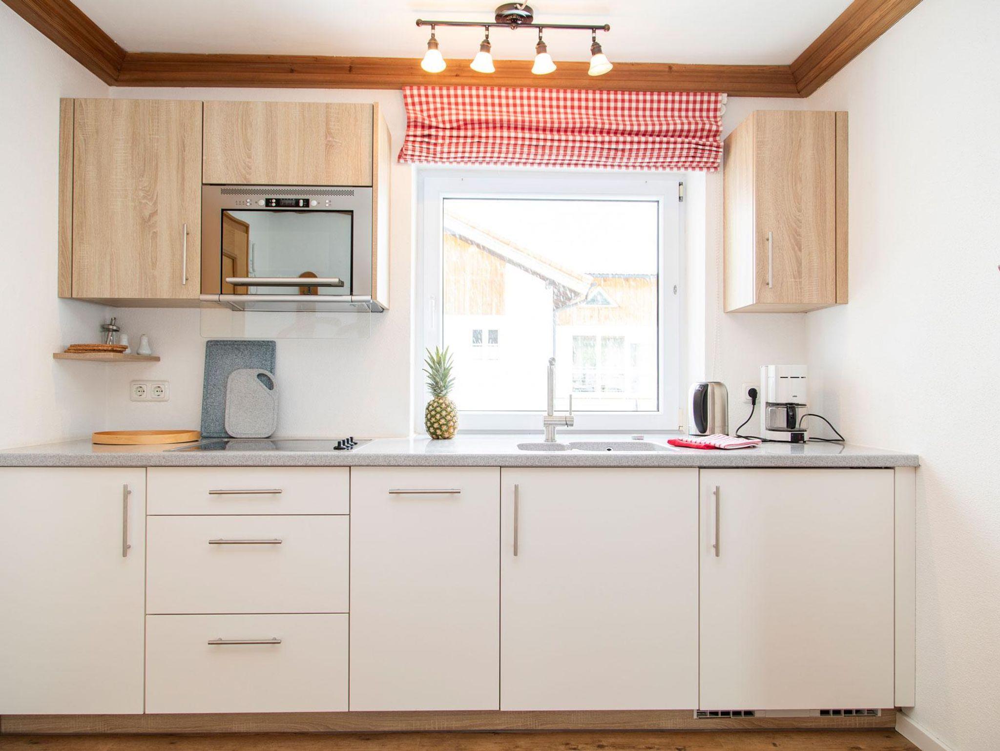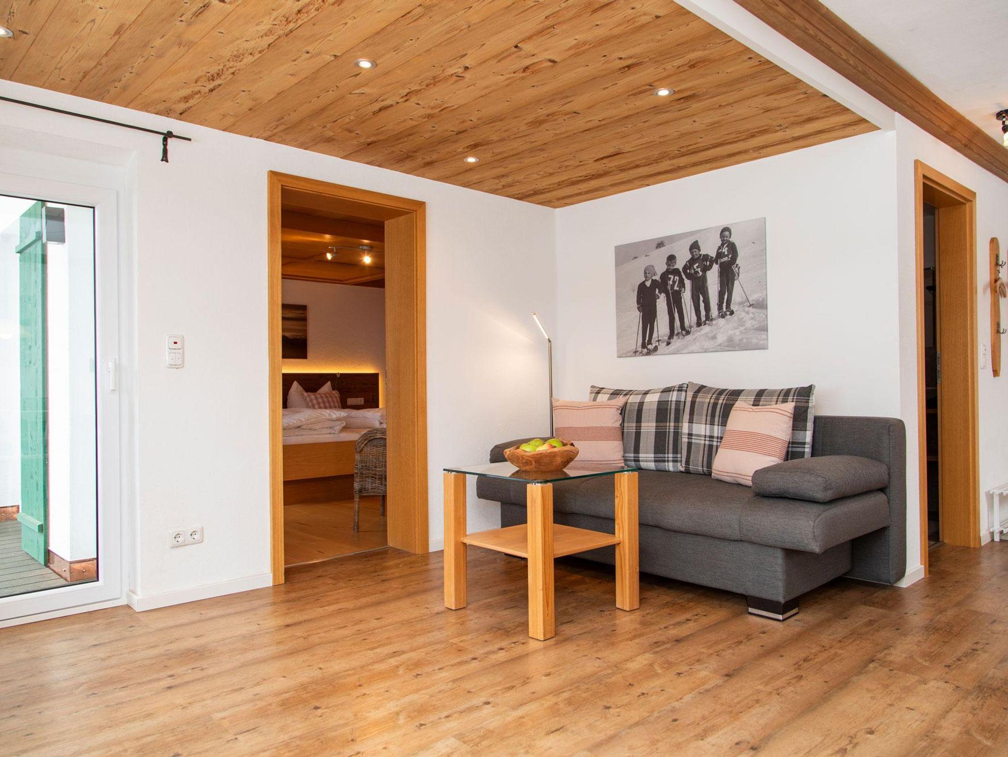 Unsere Erdgeschoss-Wohnung mit ihrer heimeligen und hochwertigen Ausstattung sorgt direkt für die typische Allgäuer Gemütlichkeit. Das separate Schlafzimmer mit Doppelbett bietet ausreichend Platz zum Schlafen und ein Frühstück auf der eigenen Terrasse, natürlich mit Blick zur benachbarten Kappl (allgäuerisch für Kapelle), sorgt für einen wunderbar idyllischen Urlaubsmoment.
