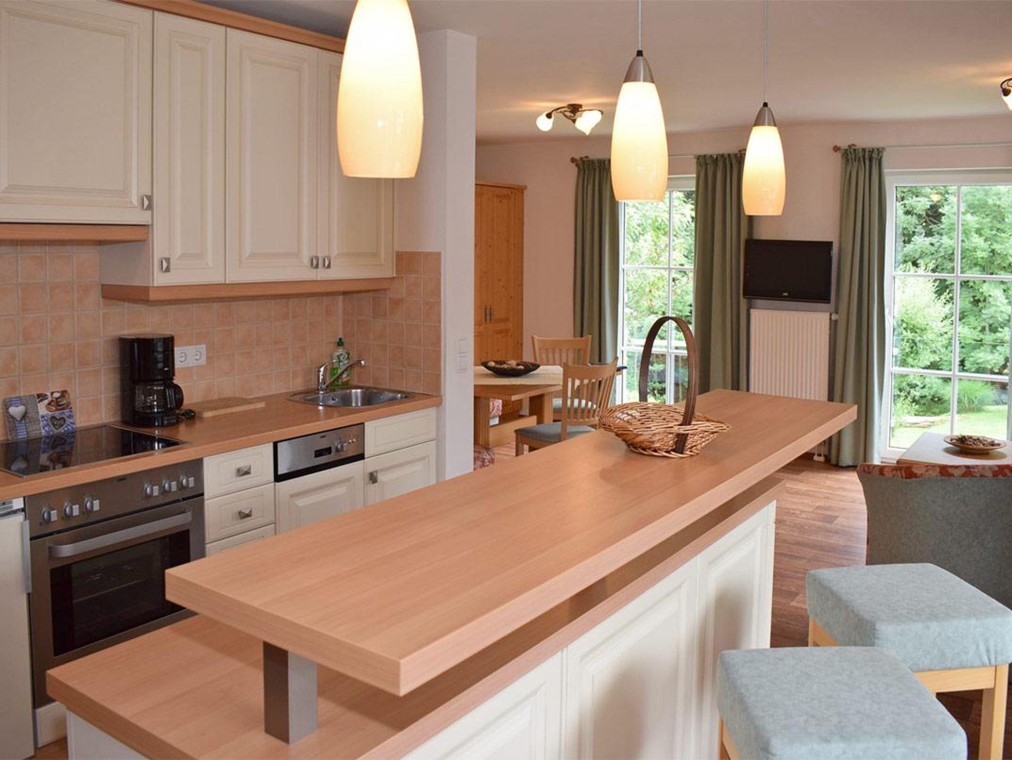 Diese Ferienwohnung verfügt über ein Schlafzimmer und weiteren Schlafmöglichkeiten im Wohnbereich durch ein ausziehbare Couch und einer Couchliege sie bietet Platz für 2-5 Personen. Die Küche ist mit einer Spülmaschine und weiterm Zubehör komplett ausgestattet. Das Bad ist mit einer Badewanne eingerichtet und es gehört ein Fön zur Ausstattung. Im Wohnraum befindet sich eine TV-SAT-Stereo-Anlage.W-Lan ist vorhanden. Die Ferienwohnung verfügt über einen großzügigen seperaten Balkon.
