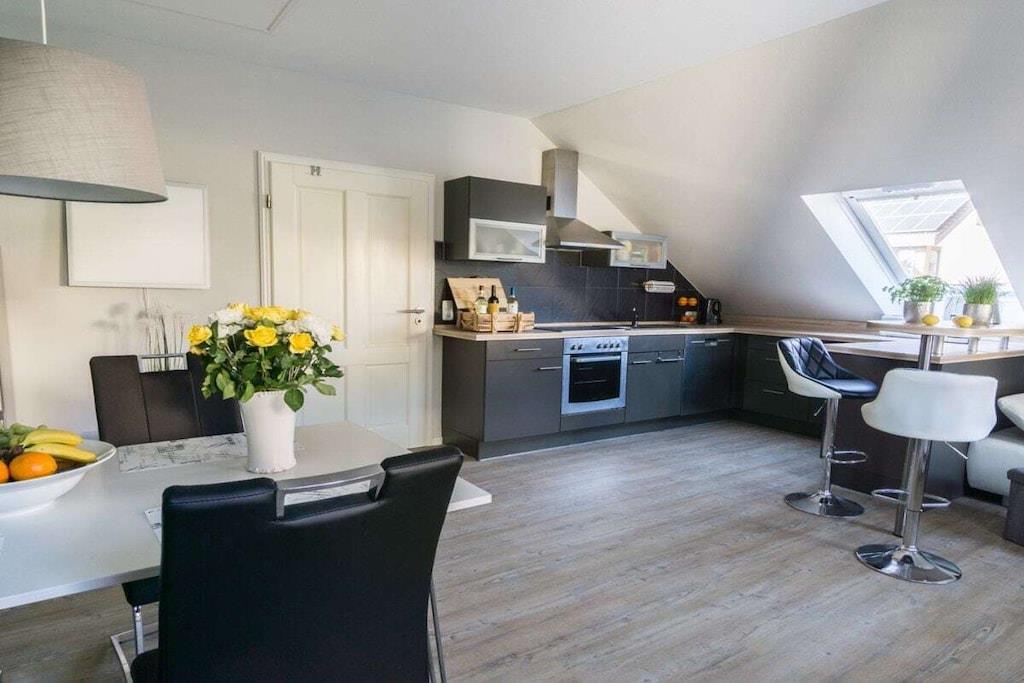 Romantisk, nyrenovert loftsleilighet med fantastisk utsikt over foten av Spessart-fjellene. Leiligheten er møblert til høyeste moderne standard; alt du trenger å gjøre er å slappe av og kose deg. Bildene taler for seg selv. Perfekt for turgåere, syklister, golfere og mer. Sentralt beliggende for statshageutstillingen i Würzburg og dagsturer til Aschaffenburg, Frankfurt og Miltenberg.