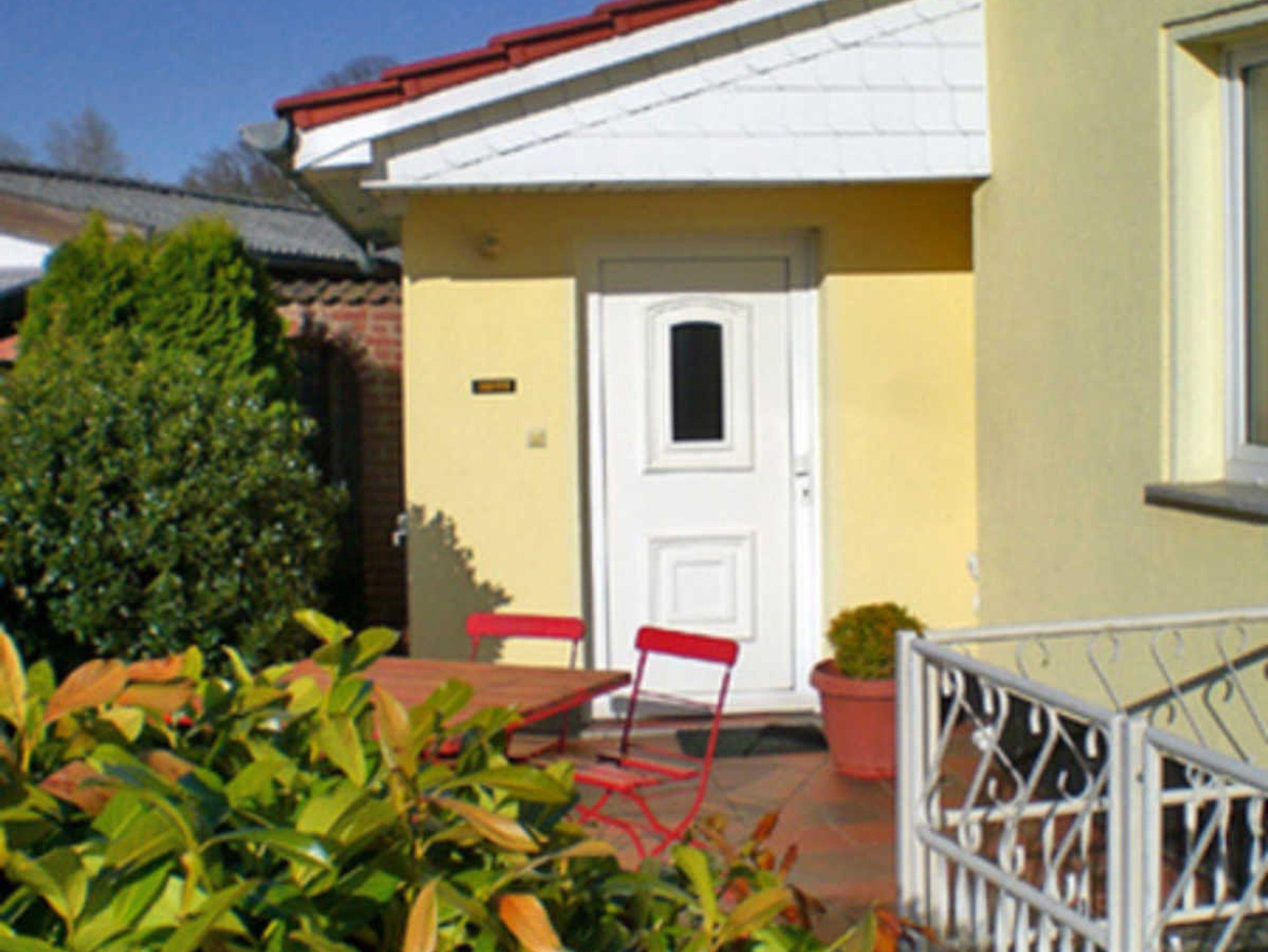 Neben dem Hauptgebäude befindet sich der Zugang zur Ferienwohnung. Die Wohnung ist von der Straße abgewandt und hat Blick zum Innenhof. Die Einrichtung ist modern und gemütlich. Eine kleine Grillecke vor dem Eingang sowie ein Parkplatz unmittelbar am Haus stehen ebenfalls zur Verfügung.