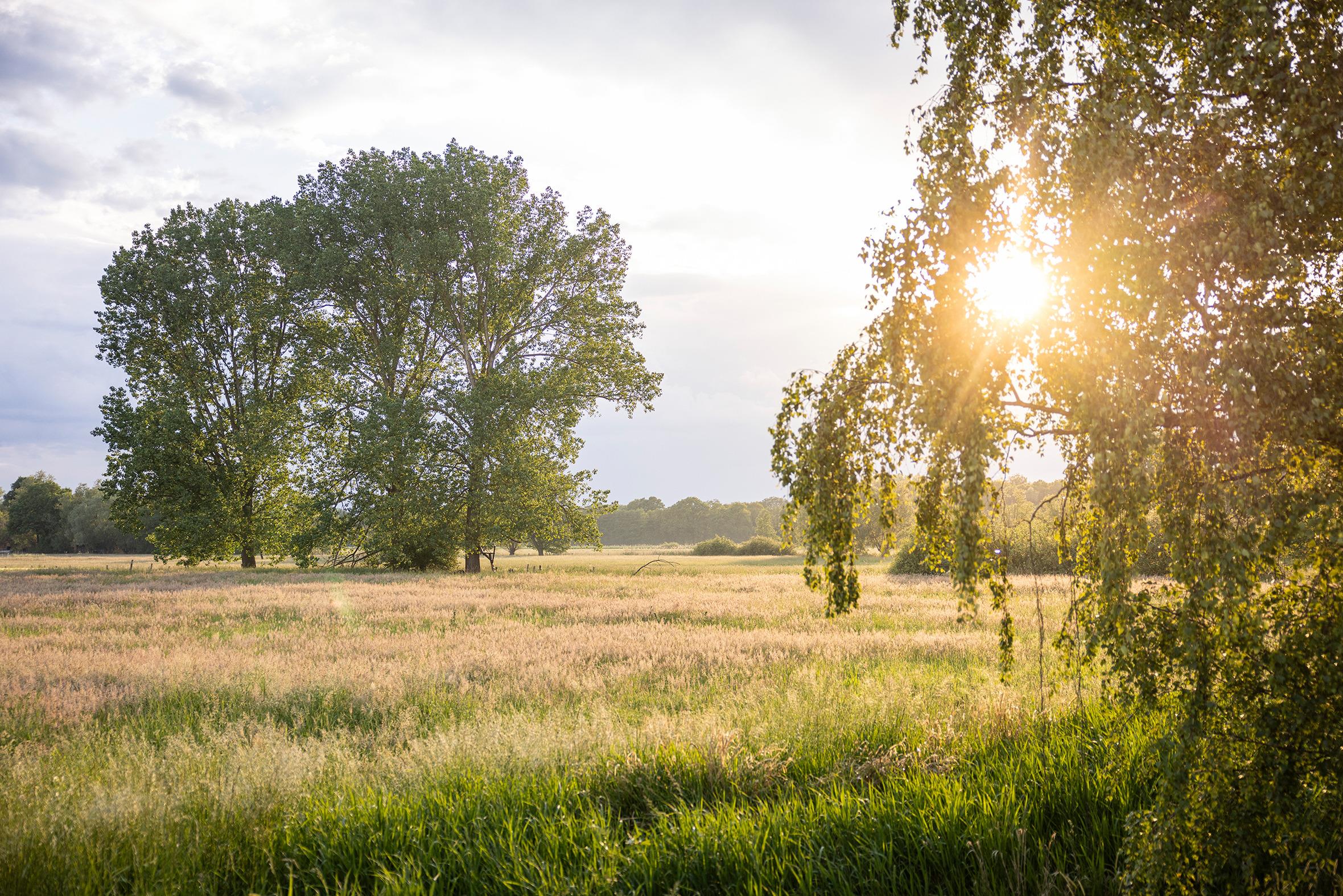 Scheint die Sonne, lädt unsere großzügige Terrasse mit gemütlichen Outdoormöbeln zum Verweilen und Genießen ein. Der wunderschöne Blick ins Grüne sorgt bereits beim Morgenkaffee oder abendlichen Glas Wein für entspannte und besondere Momente. Nicht wundern, wenn Hasen, Rehe oder die heimische Storchenfamilie auf der angrenzenden Wiese zu Besuch kommen.