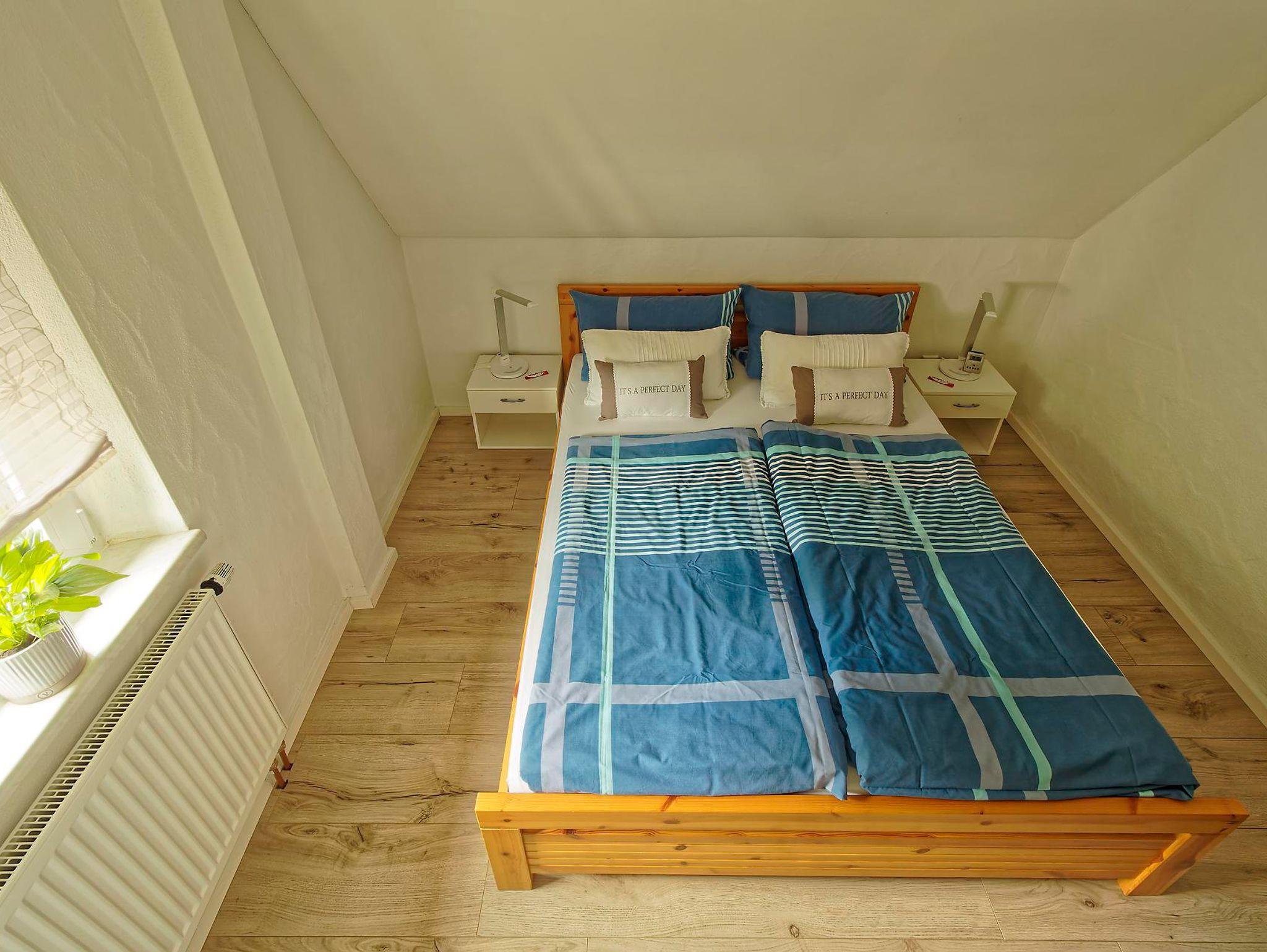 • Ein Schlafzimmer mit Doppelbett