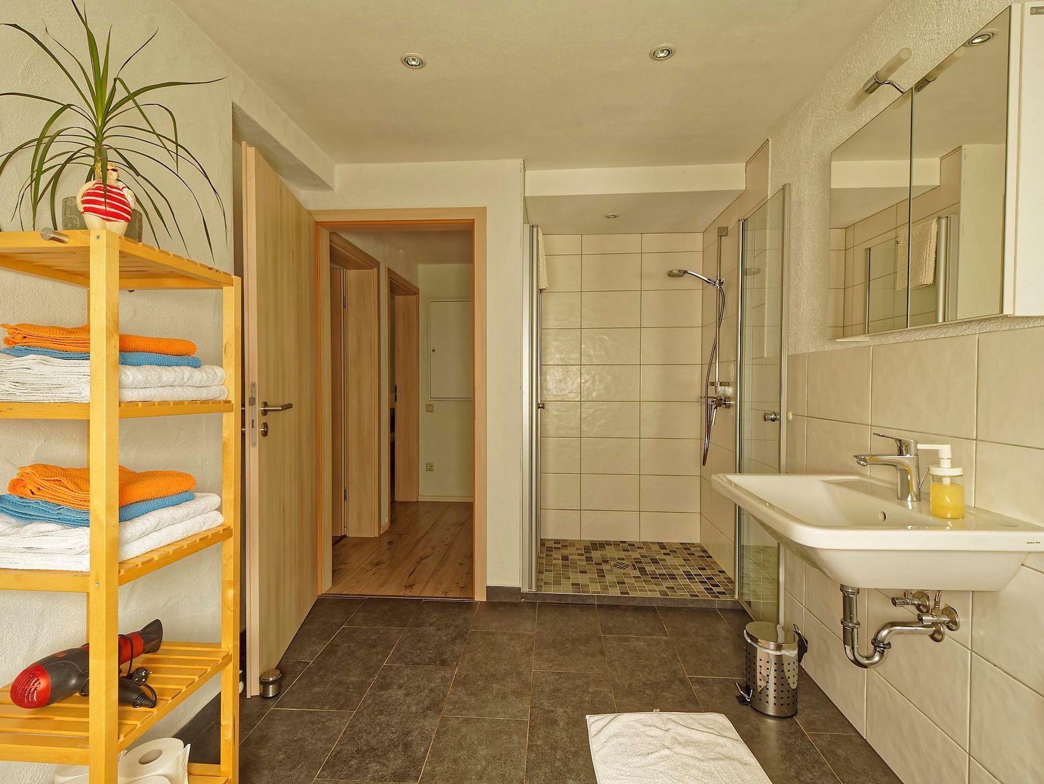 • Große Dusche, Waschbecken mit Spiegel, WC