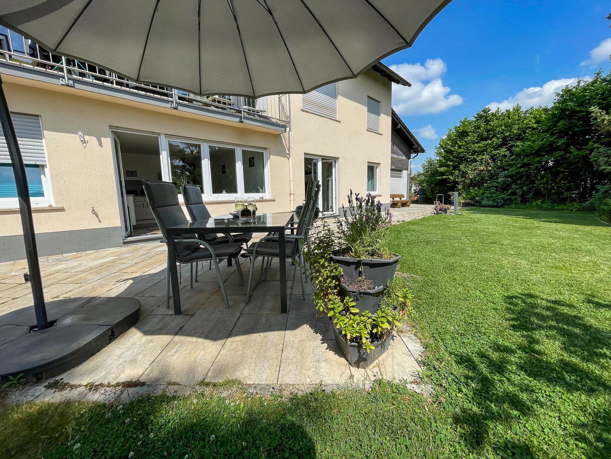 Die ca. 90 qm große moderne Nichtraucher-Ferienwohnung verfügt über zwei Schlafzimmer mit Doppelbetten, ein Wohnzimmer mit Schlafcouch, ein vollständig saniertes Bad sowie eine neue Wohnküche. Unsere Gäste dürfen den großen Garten gerne mitbenutzen. Auch Gartenmöbel, ein Sonnenschirm und ein Weber-Grill stehen für Sie zur Verfügung.