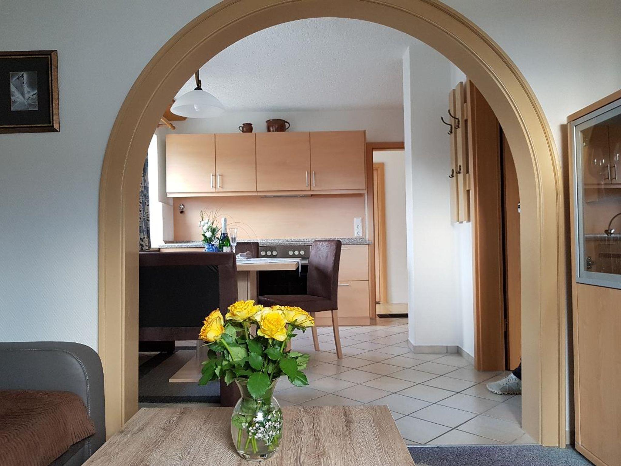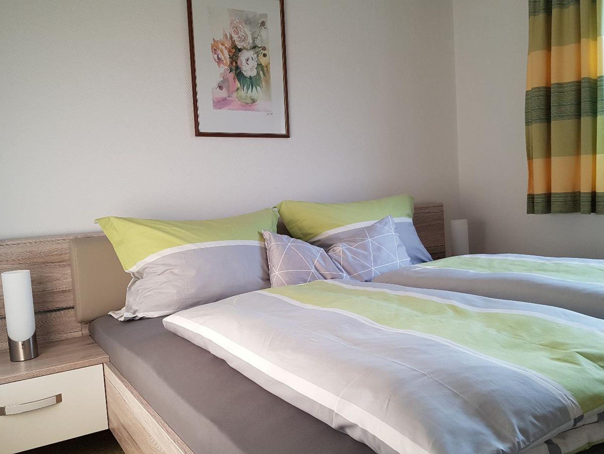 Die komplett neu renovierte Ferienwohnung mit ebenerdigem, separatem Eingang ist ausgestattet mit Küchenzeile., Essecke und Geschirrspülmaschine, Wohnzimmer mit Eckcouch, zwei getrennten Schlafzimmern, 2 TVs, 2 Bäder mit jeweils Dusche und WC.