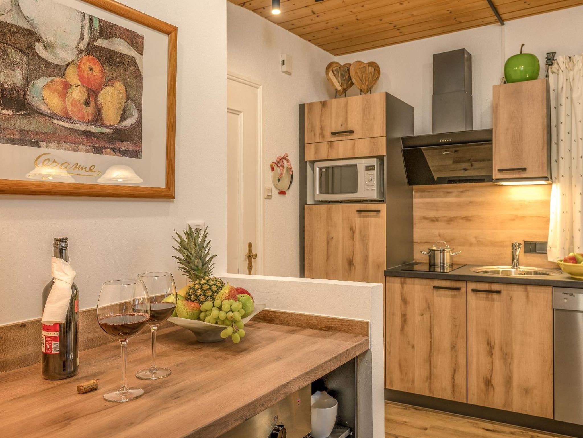 Ferienwohnung für 2 Personen mit Wohnzimmer, separatem Schlafzimmer, Wohnküche mit Küchenzeile, Dusche-WC, Balkon.