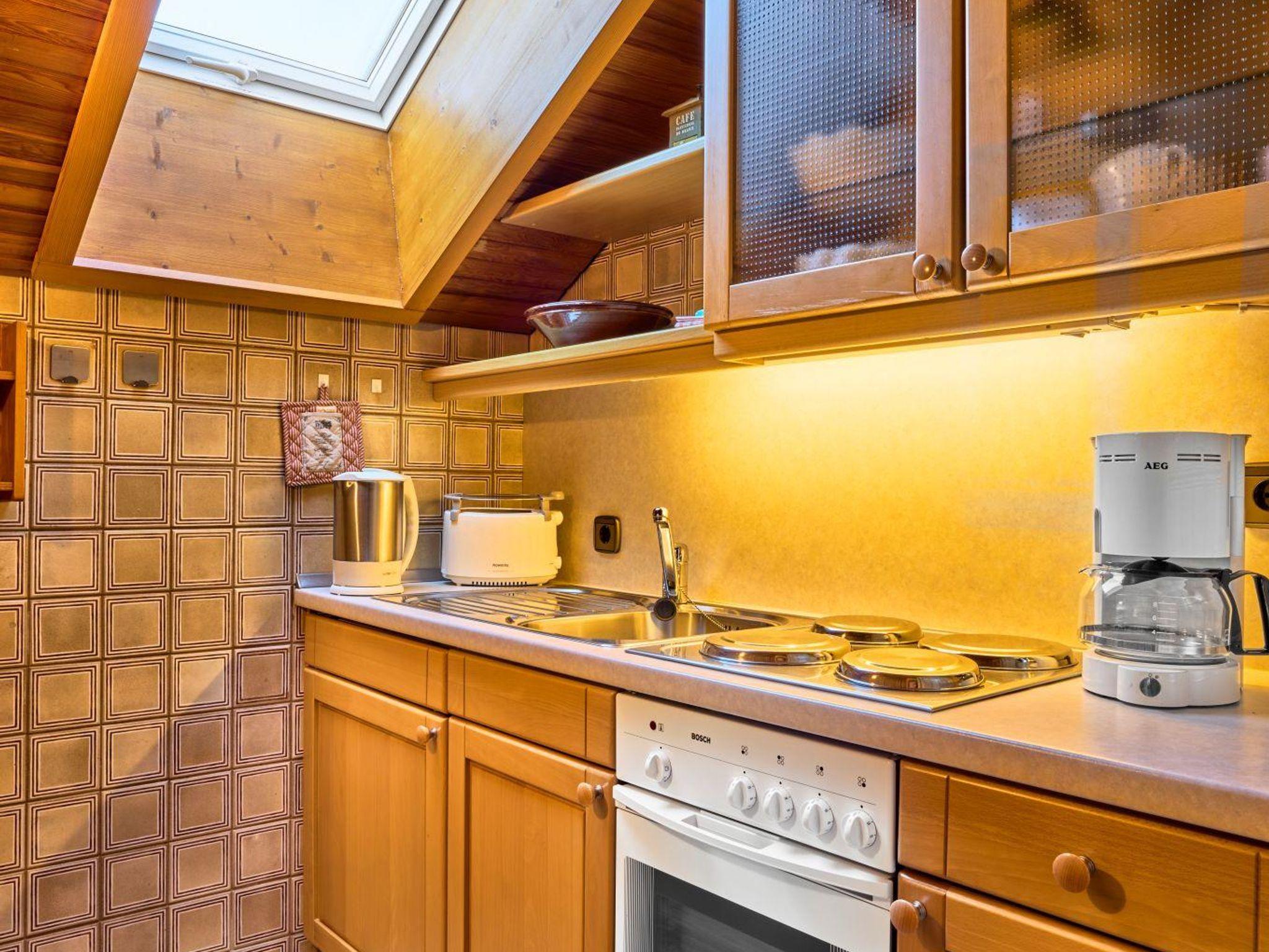 TV. Die separate Küche bietet einen Ofen mit 4 Herdplatten und ist voll