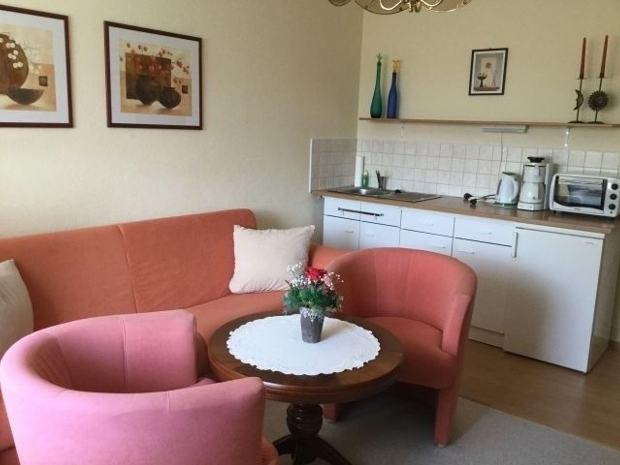 Ferienwohnung ist 35 quadratmeter groß, hat ein Wohnzimmer, Küche , Bad, Flur und