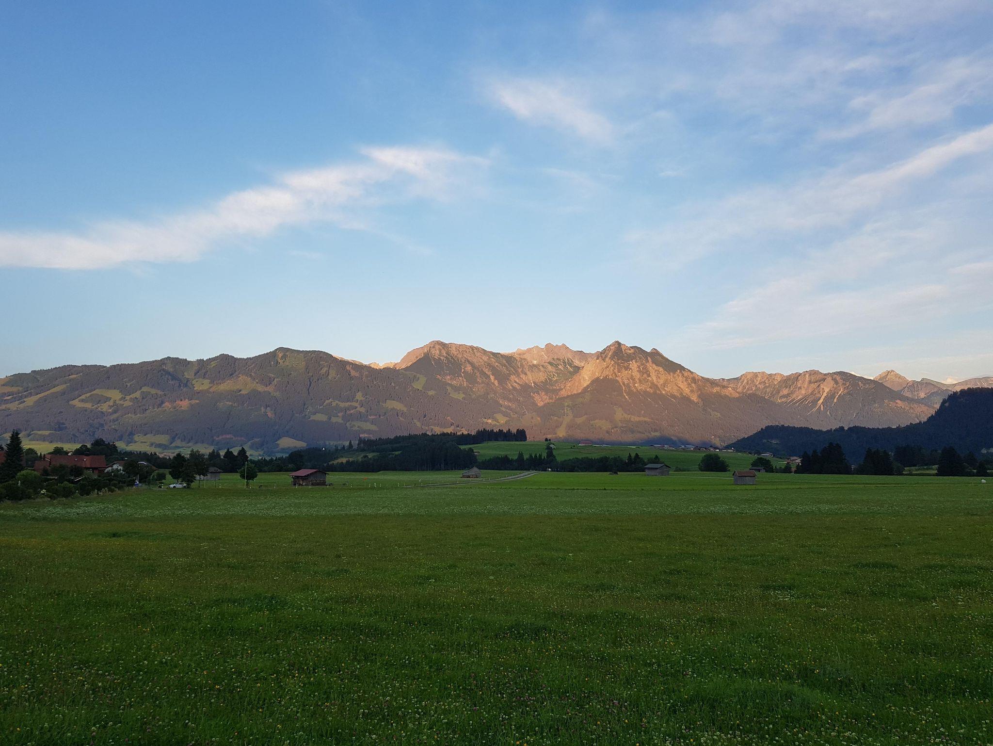 Grüne, blühende Wiesen mit den grasenden Kühen und der fantastische Bergkulisse im Hintergrund sehen Sie von allen Wohnung aus.