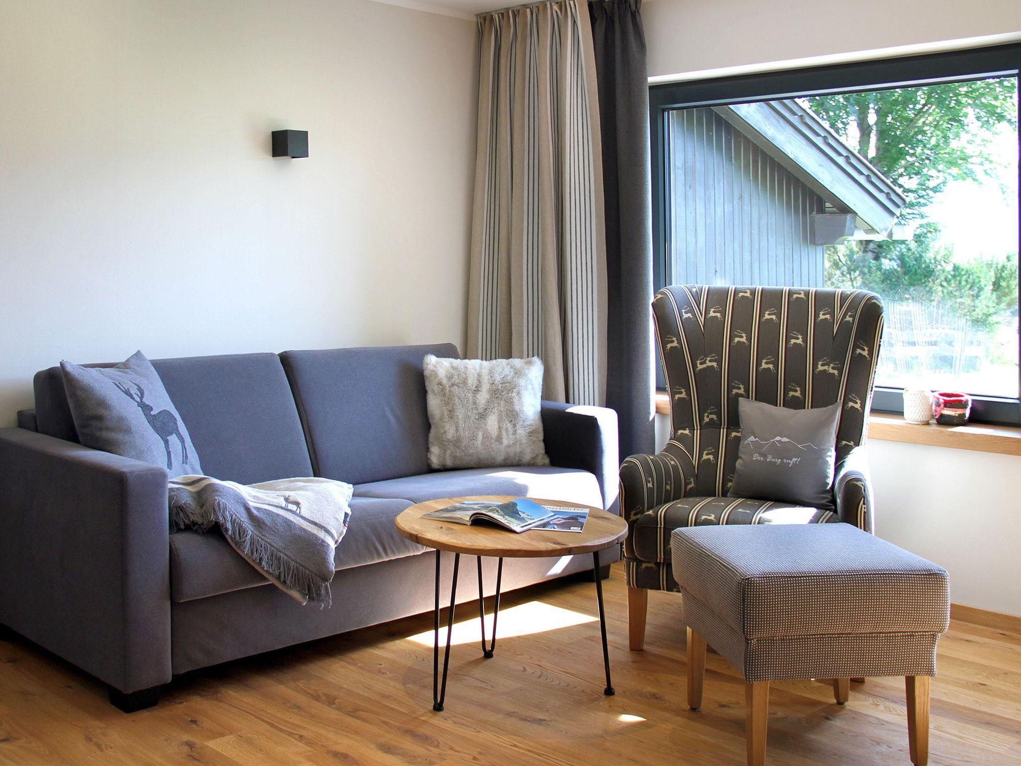 Das 52 qm große 2-Raum-Chalet befindet sich im Erdgeschoss. Bei der Ausstattung gehen der modern-alpine Stil mit traditionell hochwertigen Materialien wie Echtholzböden, Altholzwänden und Holzunikaten eine harmonische Verbindung ein. Der in warmen Naturtönen gehaltene Wohn-Essbereich mit voll ausgestatteter Küche hat einen direkten Zugang zu einer überdachten, 13 qm großen Terrasse mit Gartenmöbeln für eine kleine Auszeit bei schönem Wetter und dem bergzauberhaften Blick in die Allgäuer Hochalpen. Flat-TV und WLAN laden zu gemütlichen Stunden auf der Couch oder im heimeligen Ohrensessel ein. Der Schlafraum mit einem Doppelbett und eigenem Badezimmer mit Regendusche/WC sowie eine private Infrarotsauna für 2 Personen runden einen aktiven Bergtag mit Wärme, Ruhe und Wohlgefühl ab. Besonders geeignet für Paare und Familien mit einem Kind.