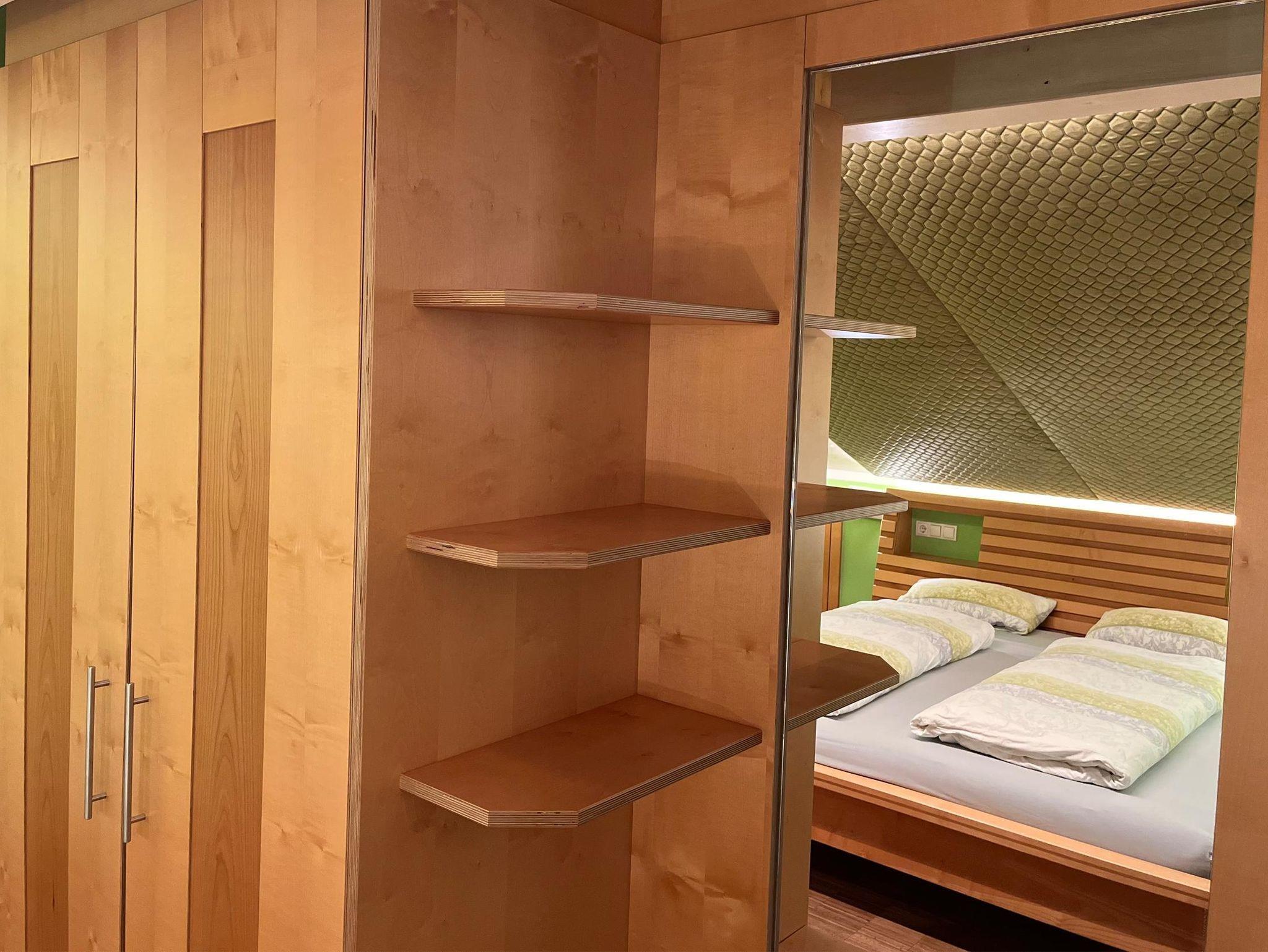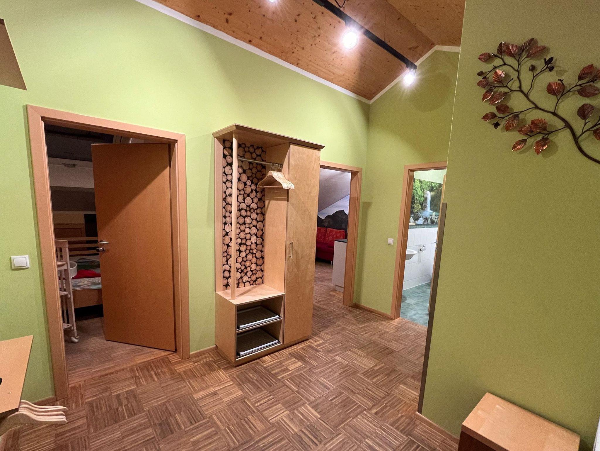 Die Holz-Esche schafft das heimelige Ambiente und die große Foto-Tapete holt das herrliche Bergpanorama an Ihren Frühstückstisch. Der kindersichere Kamin ist ein weiterer Hingucker.