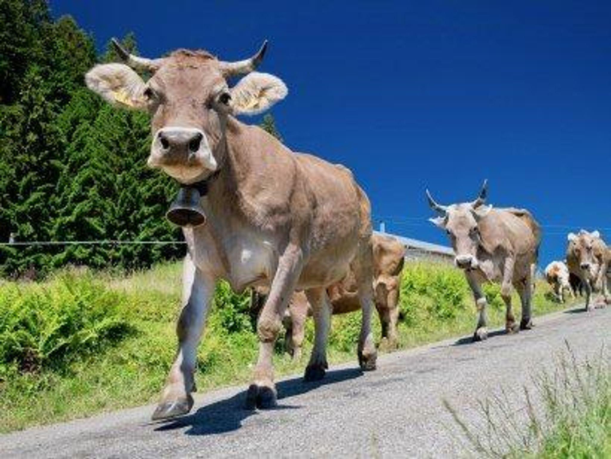 Grüne, blühende Wiesen mit den grasenden Kühen und der fantastische Bergkulisse im Hintergrund sehen Sie von allen Wohnung aus.