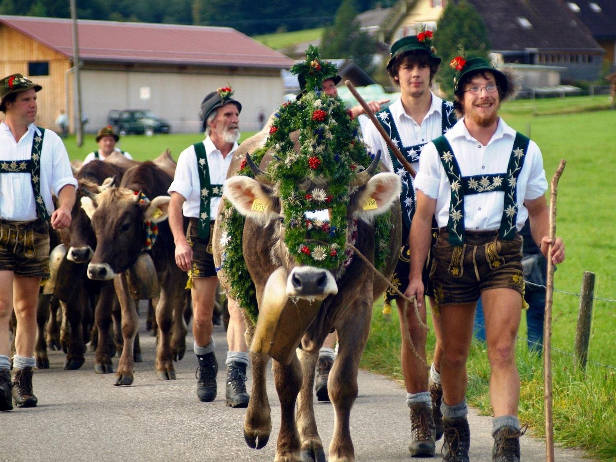 Grüne, blühende Wiesen mit den grasenden Kühen und der fantastische Bergkulisse im Hintergrund sehen Sie von allen Wohnung aus.