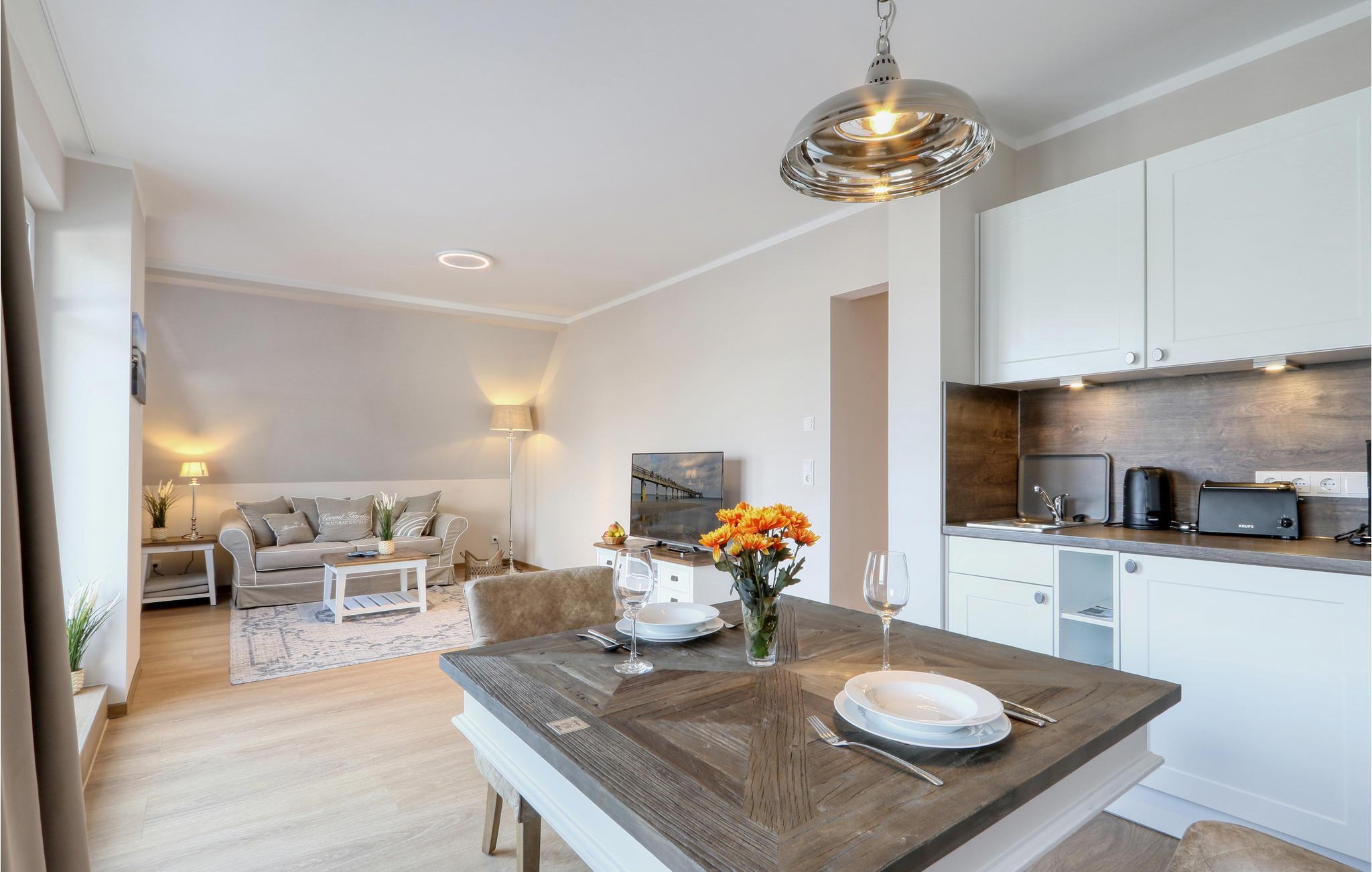 La deg fortrylle av den kilometerlange sandstranden, det krystallklare vannet og den uberørte naturen. Start dagen på din egen terrasse/balkong med ferske rundstykker fra bakeriet ved siden av. Leiligheten har en kjøkkenkrok hvor du kan tilberede små måltider. En koselig kveld i leiligheten er like fristende som et deilig kveldsmåltid med en kald øl i restauranten. For at du ikke skal trenge å bekymre deg for noe i løpet av din avslappende ferie, hjelper resepsjonen deg gjerne med spørsmål, forespørsler og insidertips i og rundt Boltenhagen.