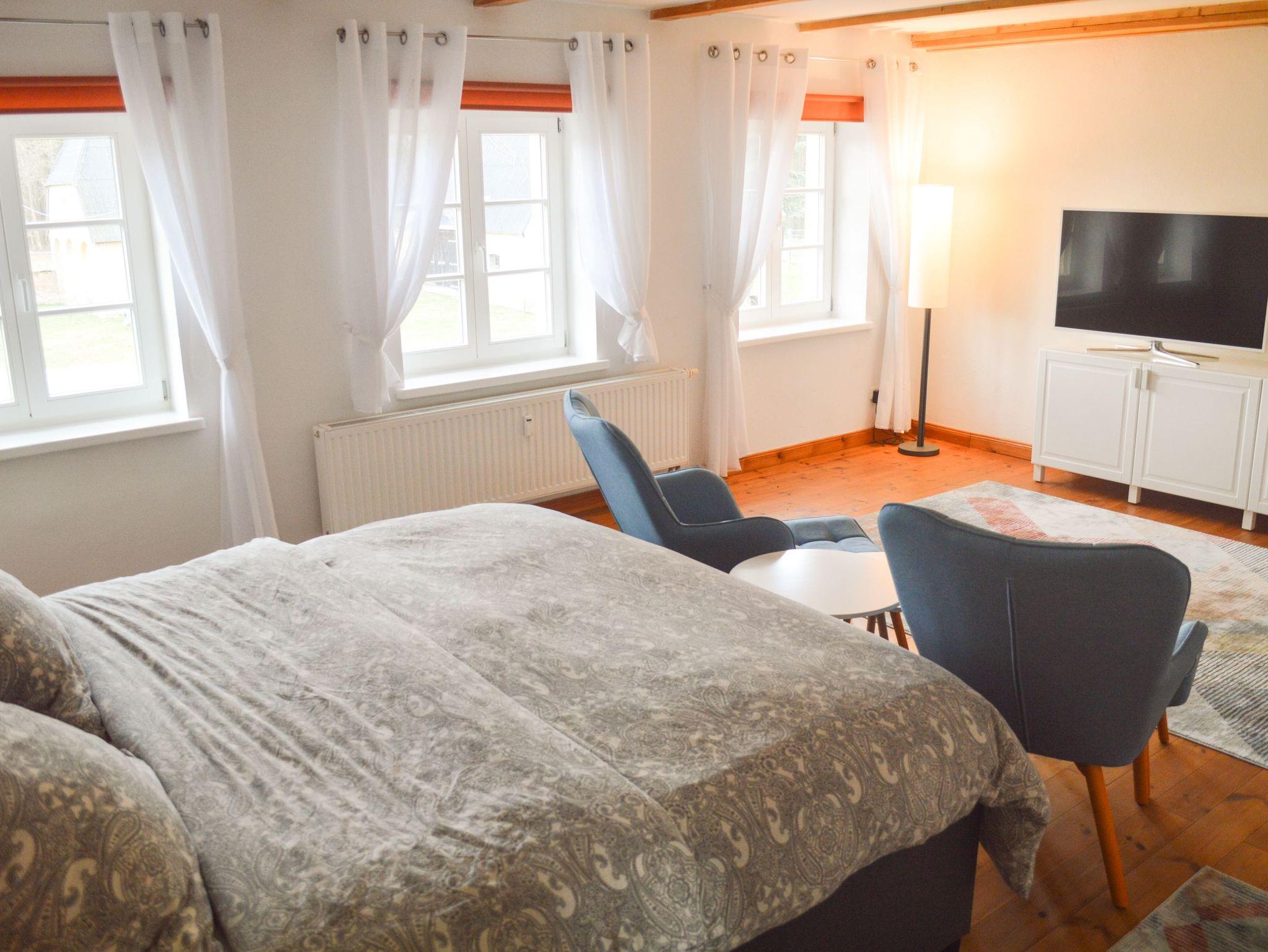 Das Gutshaus Neu Necheln ist dein bezaubernden Rückzugsort in der Mecklenburgischen Seenplatte. Die Ferienwohnung erstreckt sich über 3 Etagen auf insgesamt 140 m² und ist mit 3 Schlafzimmern für 8 Personen geeignet. Hier kannst du mit der gesamten Familie und deinem Vierbeiner eine entspannte Auszeit genießen. Die großzügigen Rundbögen und frei gelegten Deckenbalken harmonieren ideal mit den modernen Landhausmöbel und heißen dich direkt mit ihrem rustikalen Charme willkommen. Neben einem großen Wohnzimmer mit offener Küche laden dich die 3 Schlafzimmer und das Bad mit Dusche und Badewanne zu gemütlichen und erholsamen Tagen ein. Nutze den eingezäunten großen Garten oder die weitläufigen Felder und Wiesen um der Natur ganz nah zu sein. 2 Parkplätze und WLAN stehen dir zur Verfügung.