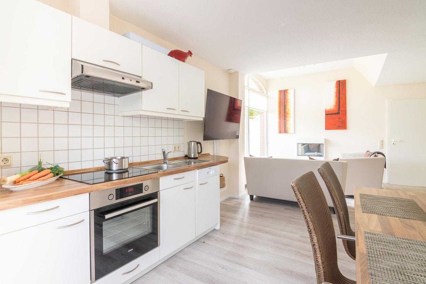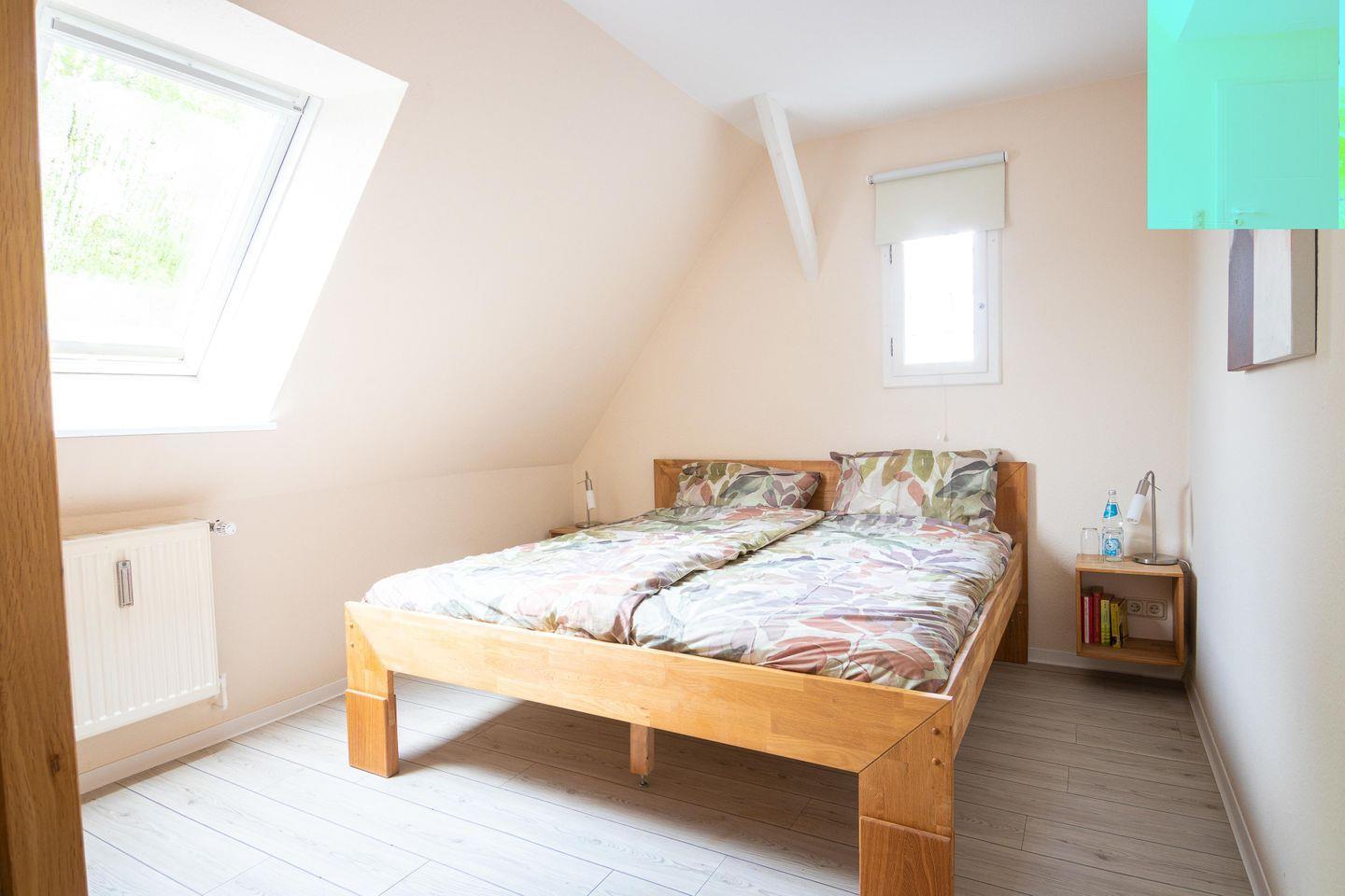 Diese wunderschöne Ferienhaushälfte mit seiner stilvollen, modernen Einrichtung verfügt auf 2 Etagen über 2 Küchen, 2 kombinierte Wohn-/Essräume, 3 Schlafräume, 1 Vollbad und 1 Duschbad, 1 Außensauna sowie einen ca. 2.200 m² großen, parkähnlichen Garten, wovon ca. 1.000 m² komplett eingezäunt sind.