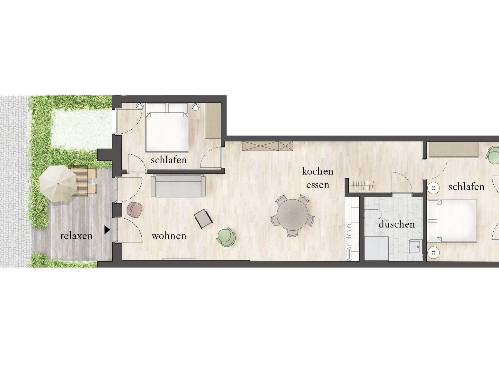 The 15 holiday lofts are situated on the edge of the Brandenburg old town, only 800 metres from the pedestrian zone. It is a few minutes on foot, by bike or by boat into the town centre, where you can stroll along the pedestrian zone, visit one of the many old churches such as the Brandenburger Dom, or visit the theatre. The many restaurants invite you to enjoy cosy evenings. For over 100 years, the finest wool and wool silk were produced on the site of the former worsted yarn spinning factory. Today you can enjoy life by the Havel here and relax. No matter whether you want to simply chill out in one of the two gardens, on the terrace or on the swimming jetty – here you can find peace and quiet right by the water, in the midst of town.