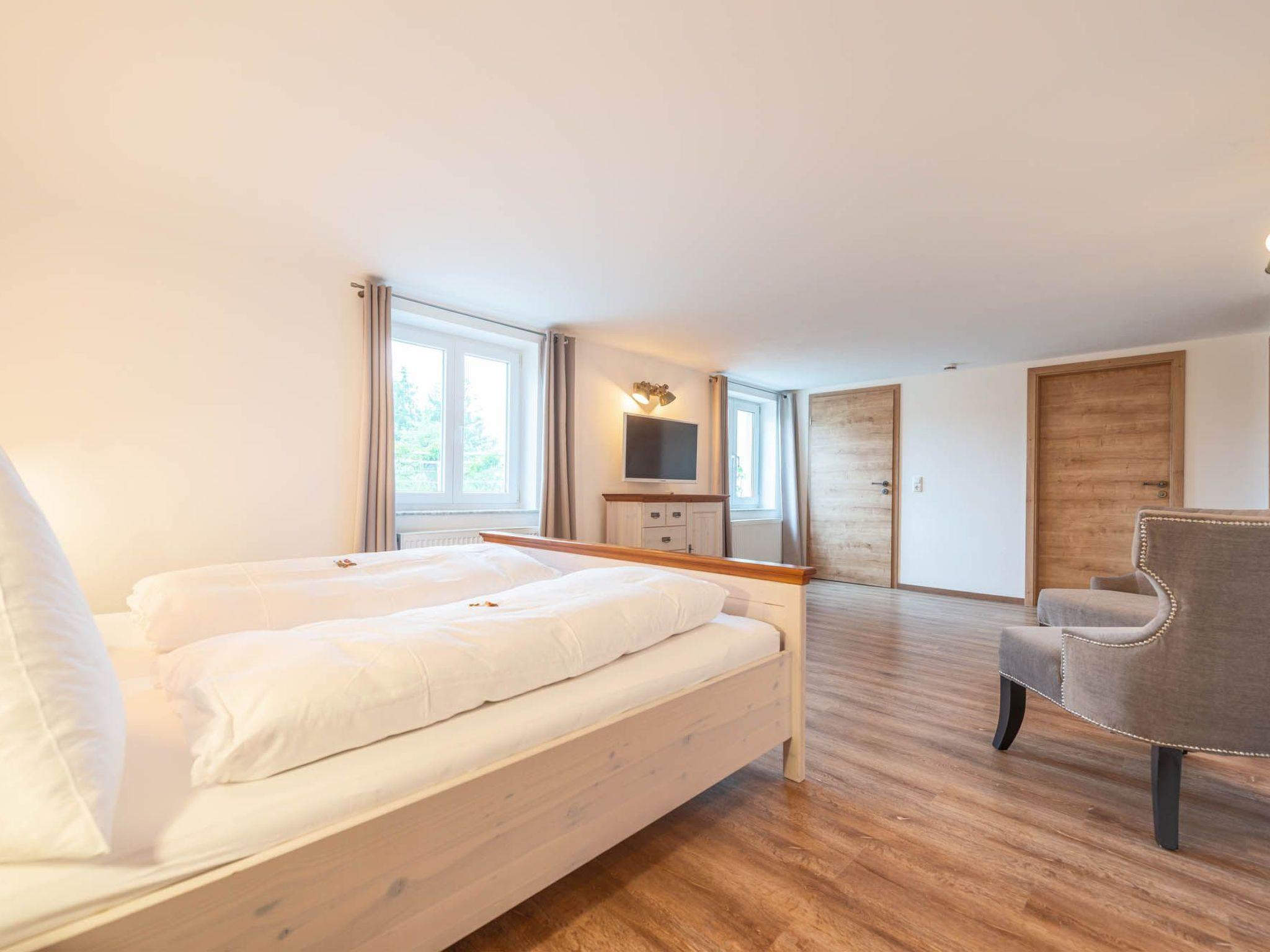 The apartment provides 80m² of living space and exudes charm and homeliness with its generosity, cosiness and comfort. There is a separate entrance. You can sleep comfortably in a big double bed with two extra-long mattresses (each 90 x 220cm), with bedside tables and reading lamps on either side, a dresser and a double-door wardrobe, providing ample storage space for your luggage. The bathroom has under-floor heating and a corner bath, as well as an open shower, a washbasin with a cupboard and mirror, and a hairdryer. You can relax in the living room after a day trip on the big sofa, with a wall-mounted TV with satellite channels and a DVD player. There is also a stereo system with a USB port for your entertainment. Free wireless Internet access is available. You go past the dining table with three chairs to the fully-equipped country kitchen, which enables comprehensive self-catering with a four-zone ceramic hob, a fridge and freezer, a dishwasher, a microwave, a coffee machine, a kettle and a toaster. Owing to the additional room, it is possible to accommodate two further people. There is a separate WC and there is also generous cloakroom space.