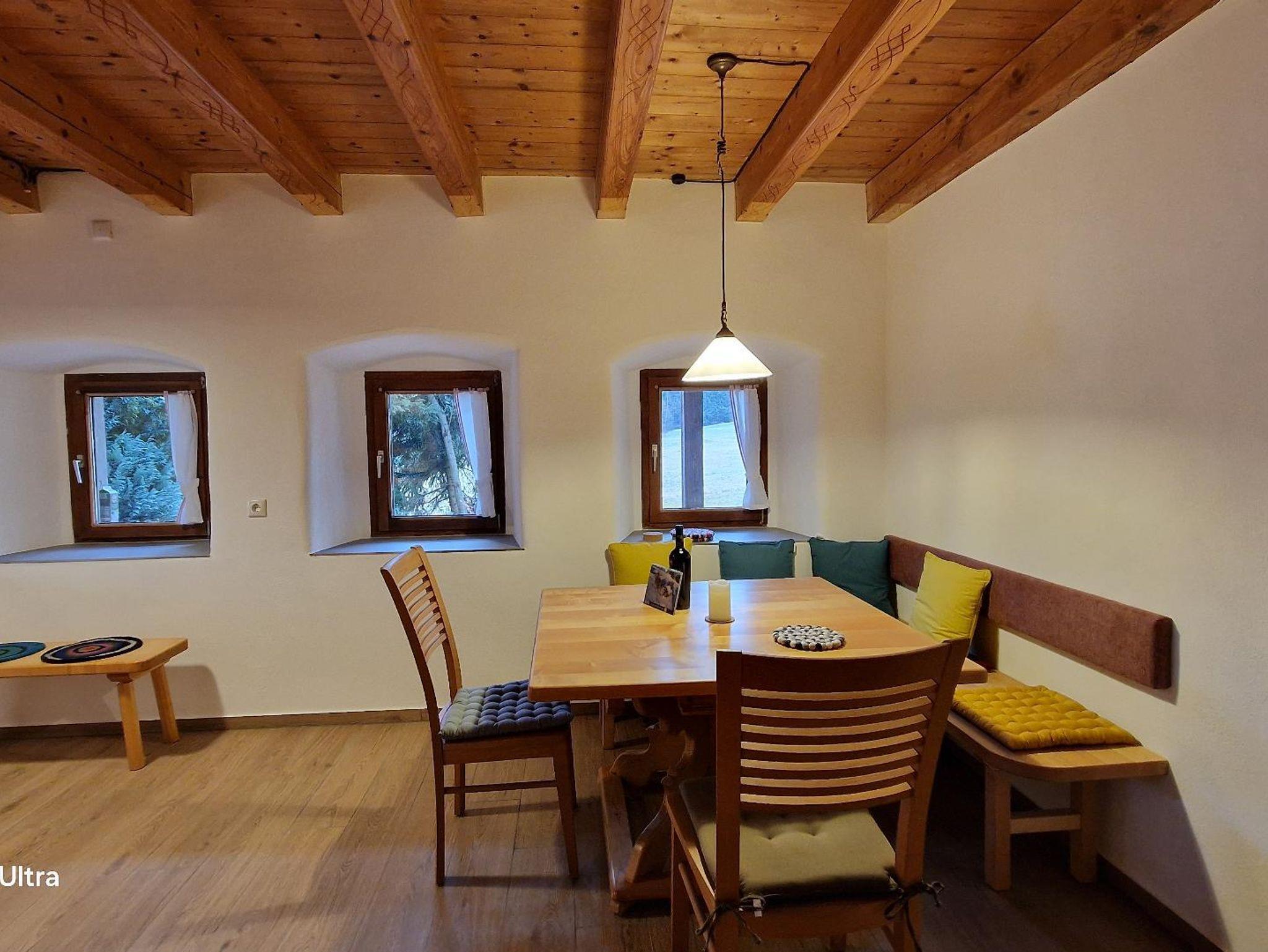 Das alte (Baujahr 1804) Bauernhäuschen wurde 2023/24 von uns kernsaniert und renoviert. Unser Wunsch war sowohl den Charme des alten Hauses zu erhalten als auch modernen Komfort anzubieten. So können jetzt dank Fußboden-und Wandheizung auch an kalten Tagen nach dem Skifahren oder einer romantischen Winterwanderung sehr gemütliche Stunden im Haus verbracht werden. In Wohnzimmer und Küche können Sie zusätzlich mit einem Holzofen heizen. Zu allen Jahreszeiten steht eine große Terrasse und ein großzügiger Garten mit Feuerstelle zur Verfügung. Besonders schön ist hier der Sternenhimmel, da keine Lichtverschmutzung vorhanden ist.