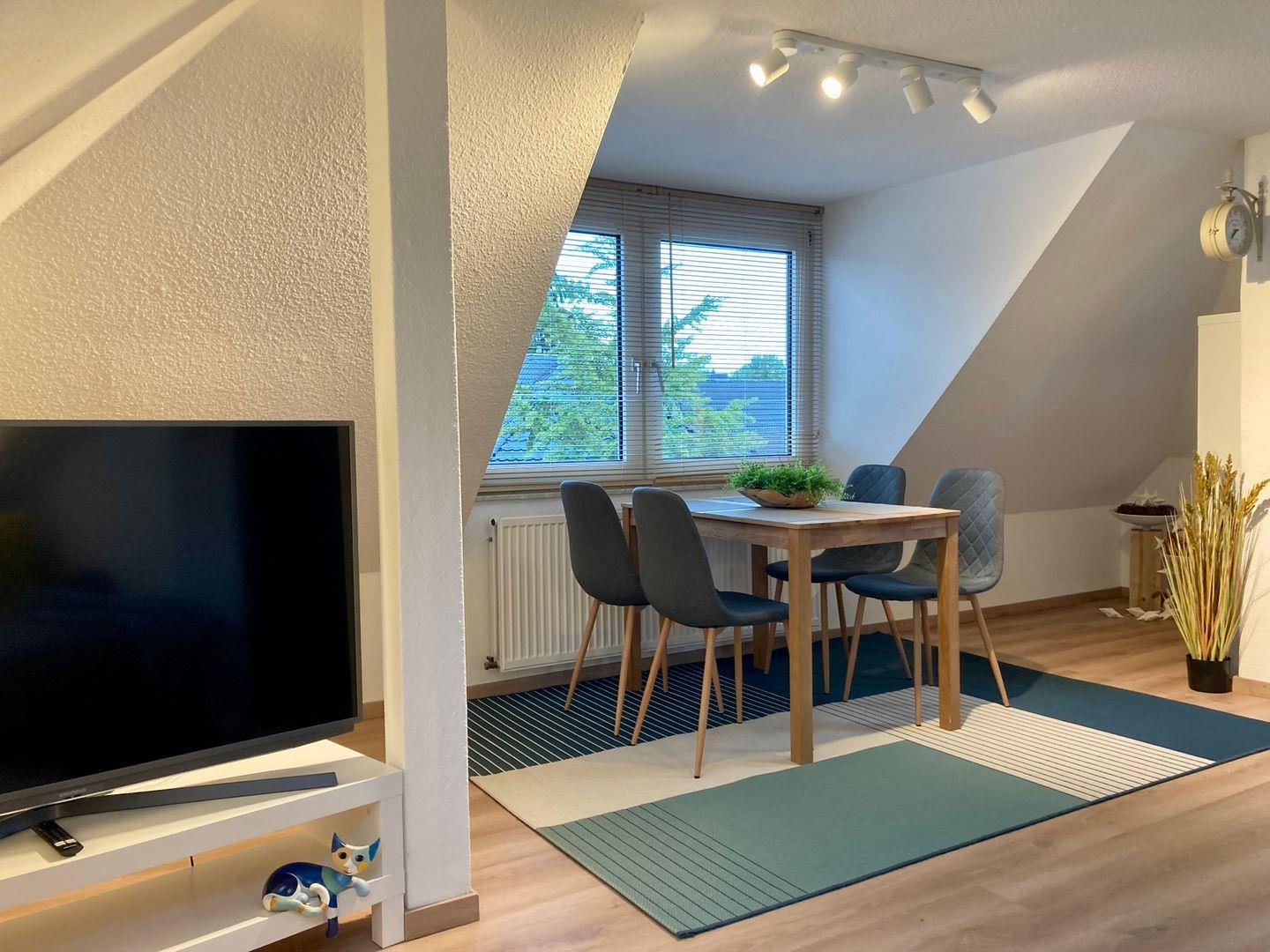 Charmantes Dachgeschoss-Apartment in Bremerhaven, nur wenige Schritte vom Bürgerpark entfernt. Auf 39 m² erwarten Sie ein helles Wohnzimmer, eine voll ausgestattete Küche, ein komfortables Doppelbett und ein Bad mit Wanne. Allergikerfreundlich, mit Waschmaschine & optionalem Wäscheservice – perfekt für Paare oder Alleinreisende, die Erholung und Komfort suchen.