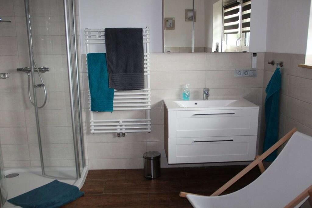 Vårt feriehus, nybygd i 2016, tilbyr 100 m² boareal og har plass til opptil 5 personer. Bresewitz ligger rett ved Bodden (Bodden) og er omtrent 4 km fra det populære feriestedet Zingst og stranden. Feriehuset er moderne innredet, med to soverom i første etasje, et romslig kjøkken/spisestue, et bad med badstue, et gjestetoalett og en bod med vaskemaskin. Eiendommen inkluderer et låsbart uthus for sykkeloppbevaring og et ladepunkt for elsykler. En restaurant og en iskrembar ligger i landsbyen. De nærmeste butikkene i Zingst er lett tilgjengelige.