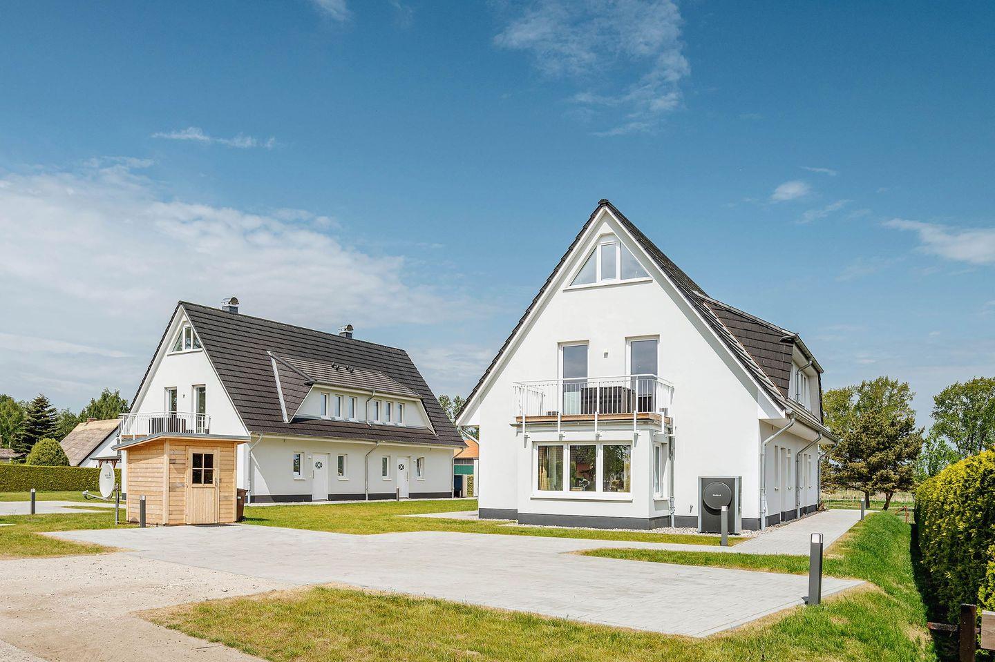 Eine modern eingerichtete und gut ausgestattete Doppelhaushälfte, Baujahr 2023, liegt direkt am Nationalpark Vorpommersche Boddenlandschaft. Das Herz des Hauses ist ein sehr großzügiger Wohnraum mit Essbereich und Leseecke, mit Sat-TV und einer komplett ausgestatteten Einbauküche.