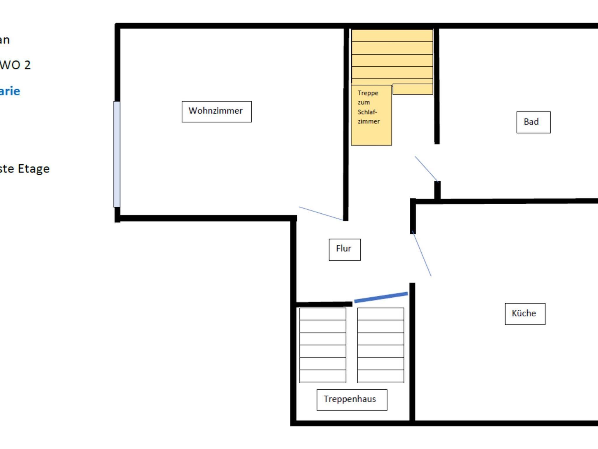 Die große und freundliche FEWO Marie erstreckt sich über die erste Etage (Wohnzimmer, Wohn-Küche und Bad) und das Dachgeschoss (Schlafzimmer mit Air-Condition). Geeignet ist die Ferienwohnung für 2 (plus 2) Personen. Die Größe beträgt 70 m².