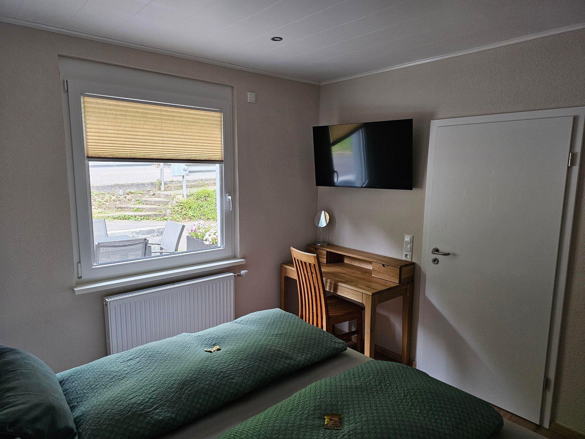 Wir bieten Ihnen ein geräumiges Wohnzimmer mit großer Eckcouch. Durch das bodentiefe Fenster haben Sie einen Ausblick zum Kippehäusje, eine kleine Kapelle im Berg welche im Ort so genannt wird.
