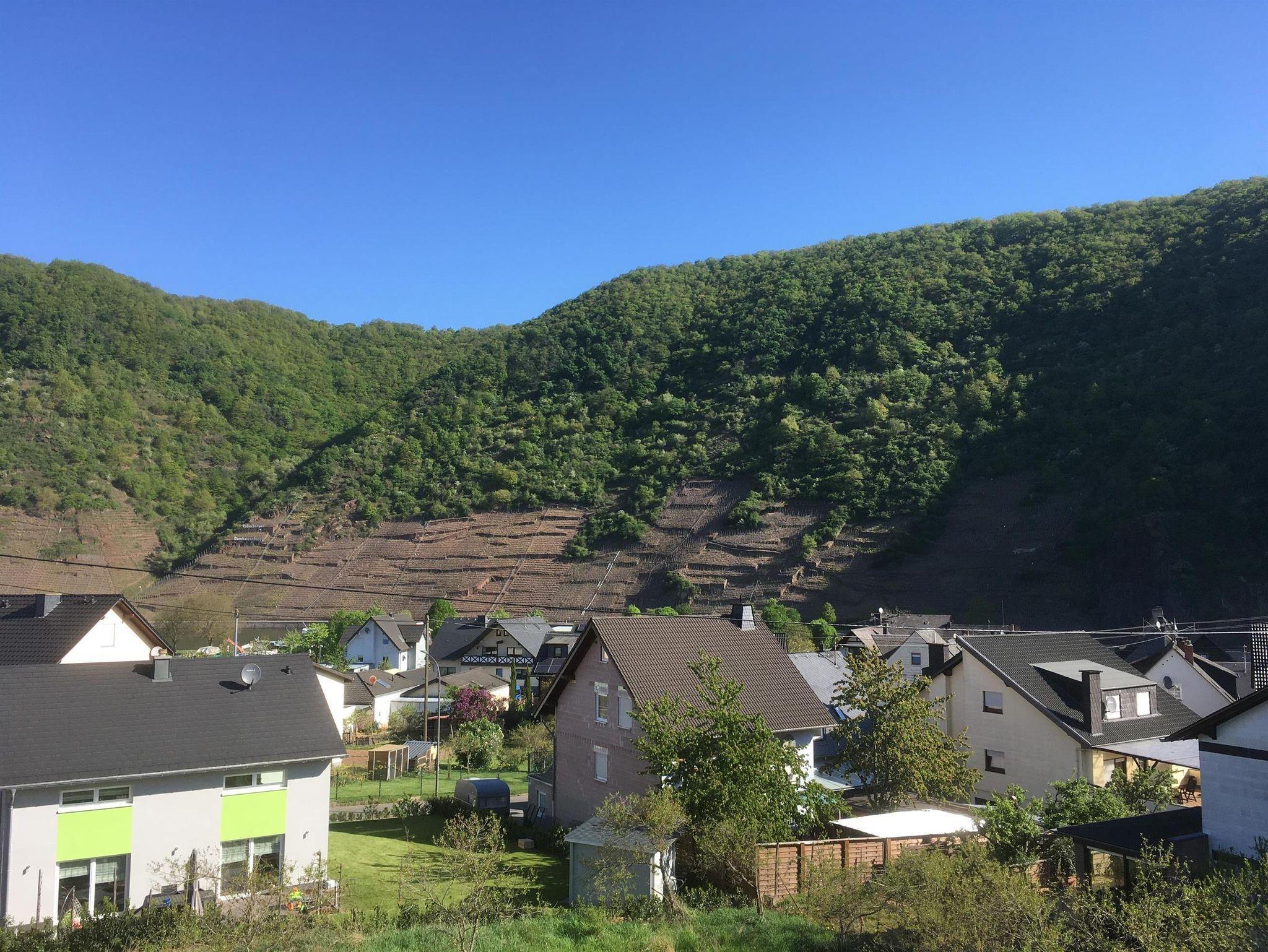 Weinhaus in ruhiger Lage, komfortable Ferienwohnung im ersten Obergeschoß für 2 bis 4 Personen: 2 Doppelschlafzimmer, Dusche-WC mit Fön, zusätsliches WC, Küche (Microwelle, Herd mit Backofen, Kaffeemaschine, Eierkocher, Wasserkocher, Toaster, Kühlschrank mit Gefrierfach, Spülmaschine, Koch- und Eßgeschirr), mit offenem Eß- und Wohnraum (Sat-TV, CD-Radio, W-Lan), Brötchendienst, Gästeticket, 2 Balkone, Garage für Motor- und Fahrräder, Parkplatz am Haus. Bettwäsche und Handtücher sind vorhanden, sowie Kinder- Reisebett und Kinder-Hochstuhl.