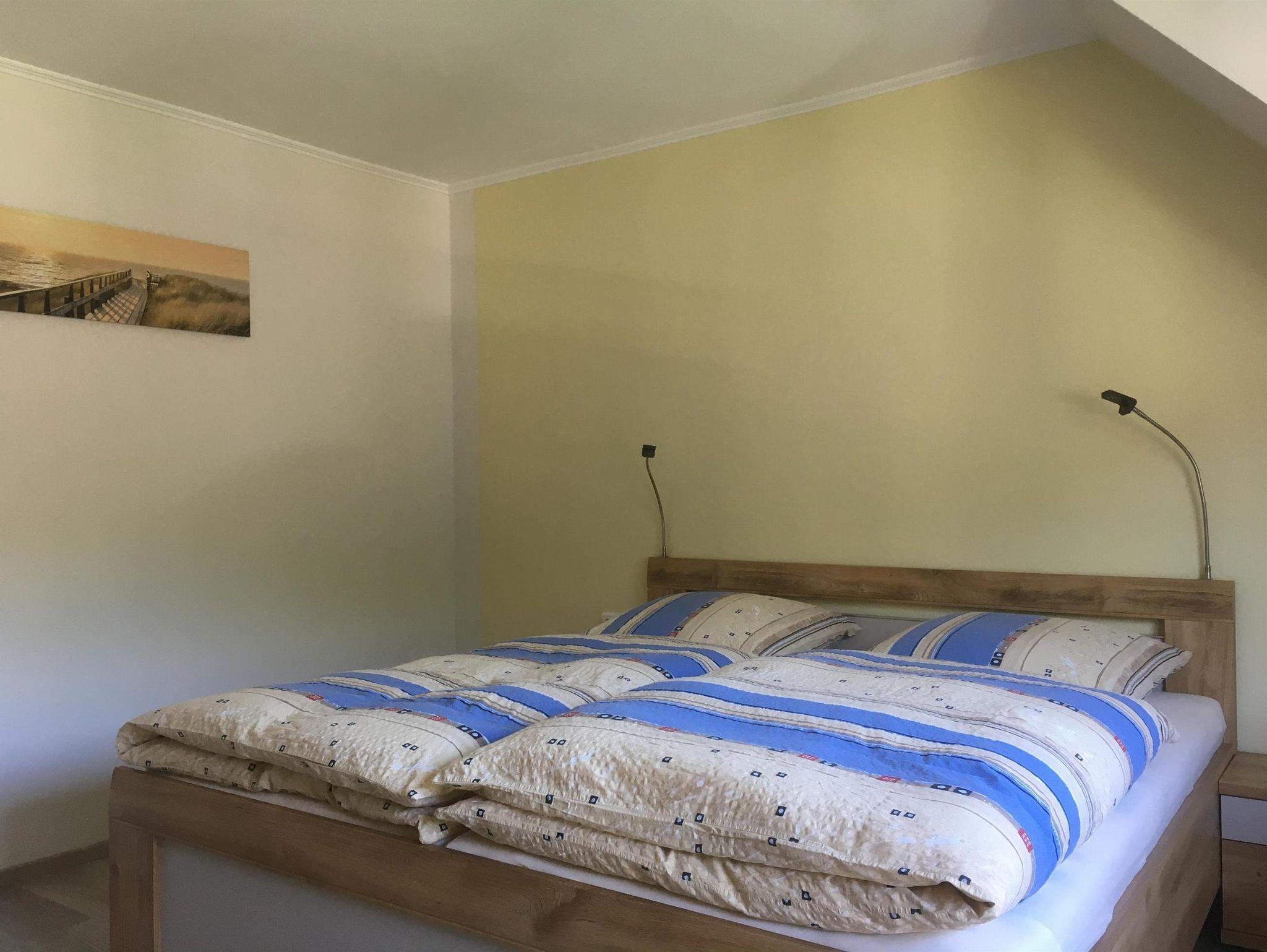 2020 neu renoviert und - eingerichtete, komfortable Ferienwohnung, ca. 75 Quadratmeter im ersten Obergeschoss, 2 Doppelschlafzimmer, Dusche - WC (Fön,Seife,Toilettenpapier), zusätzliches WC, komplett eingerichtete Küche (Microwelle, Herd mit Backofen, Kaffeemaschine, Eierkocher, Wasserkocher, Toaster, Kühlschrank mit Gefrierfach, Spülmaschine), mit offenem Eß - und Wohnraum, 2 Balkone, Parkplatz am Haus, Garage für Motor - und Fahrräder, Sat-TV, CD-Radio, W-Lan, Gäste-Ticket, Brötchendienst.Bettwäsche und Handtücher, Spül- und Reinigungsmittel, Kaffeefilter, Küchenrolle, Salz und Pfeffer sind vorhanden, sowie Beistell-Kinderbettchen und Kinder-Hochstuhl.